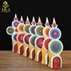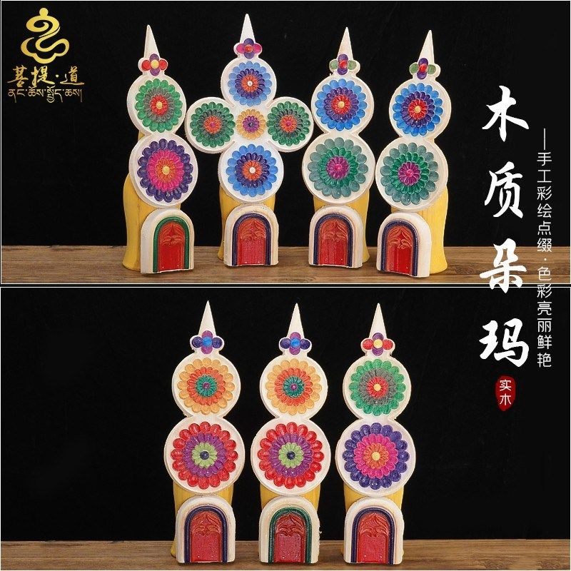 藏式尼泊尔款实木彩绘三根本食子F花佛堂上师本尊八供朵玛摆件