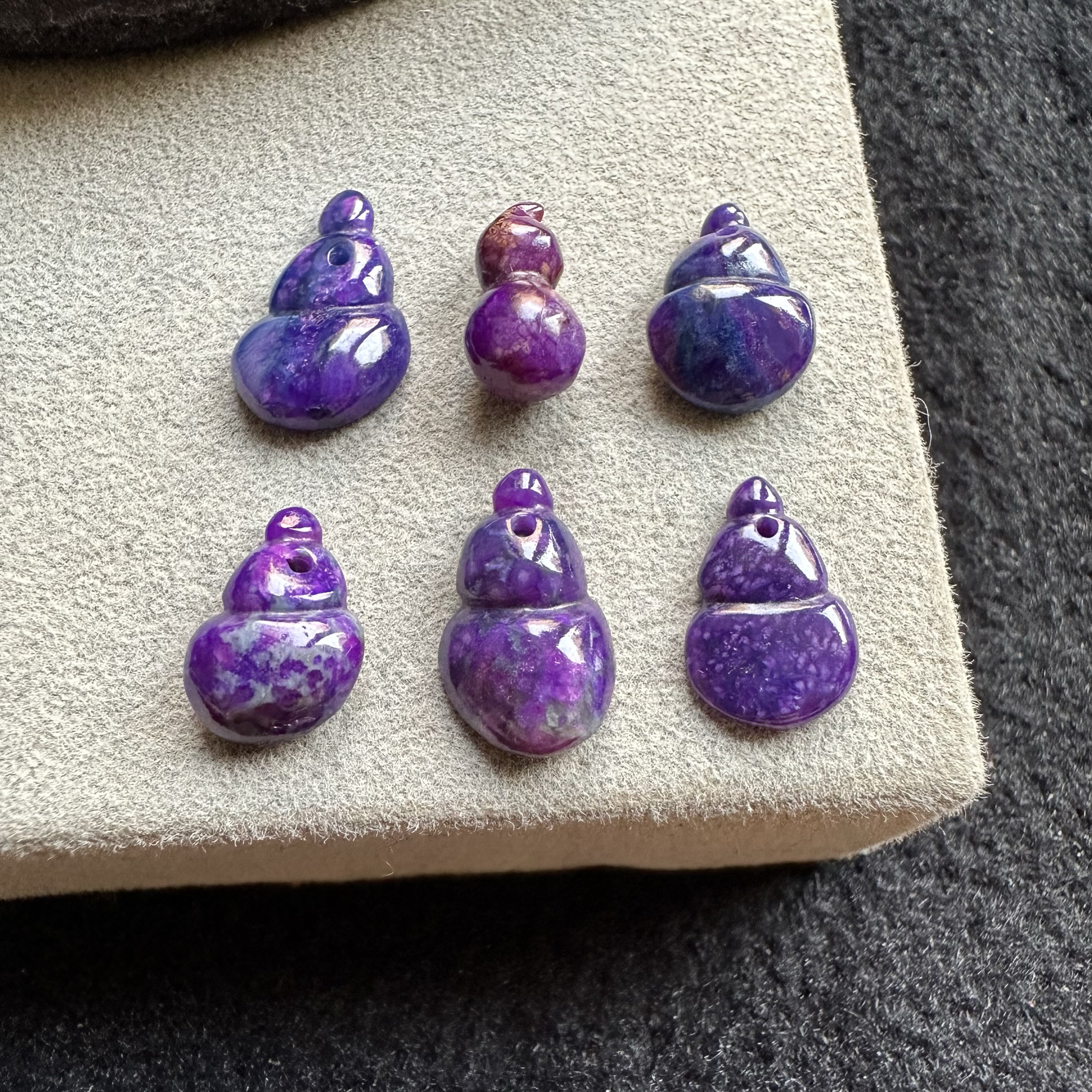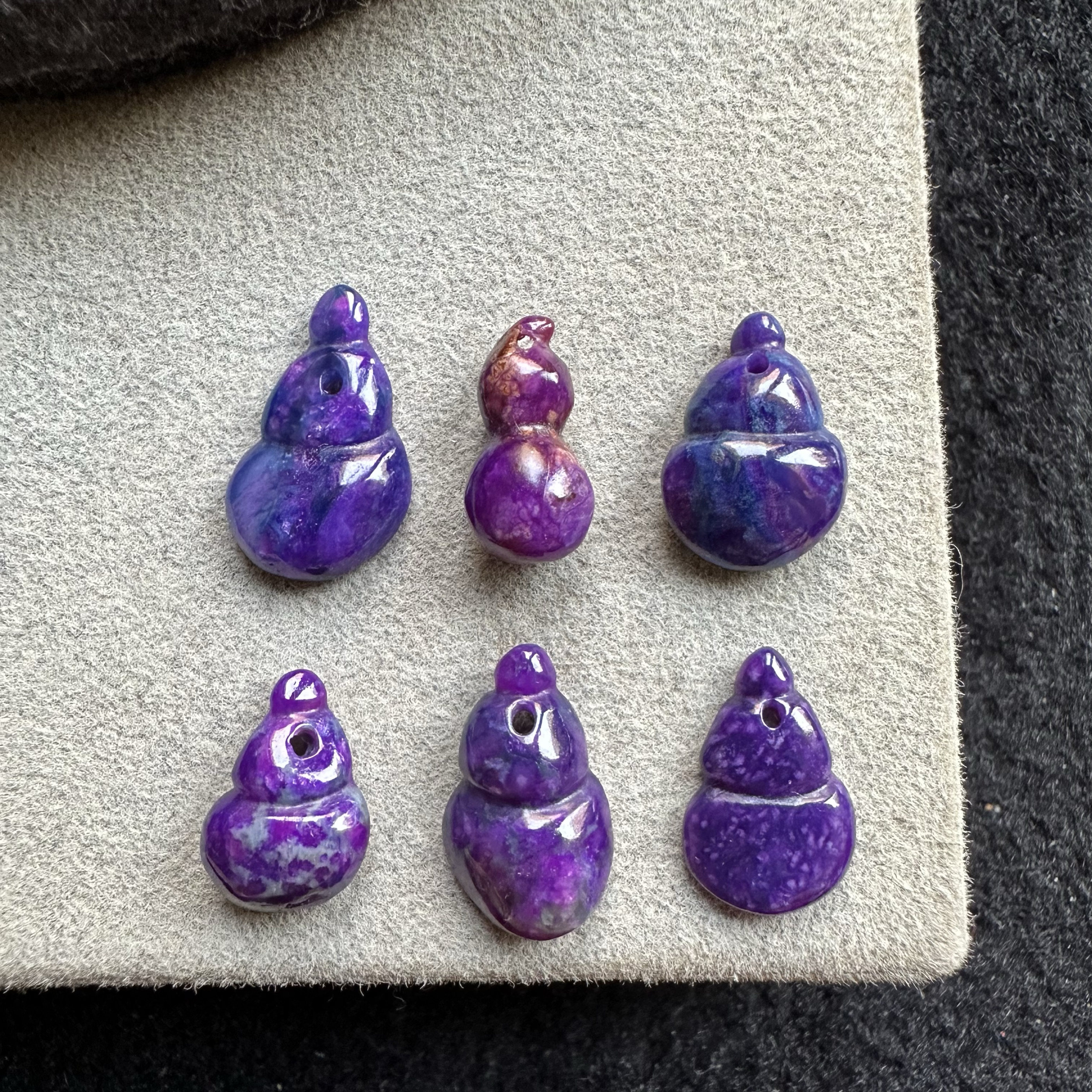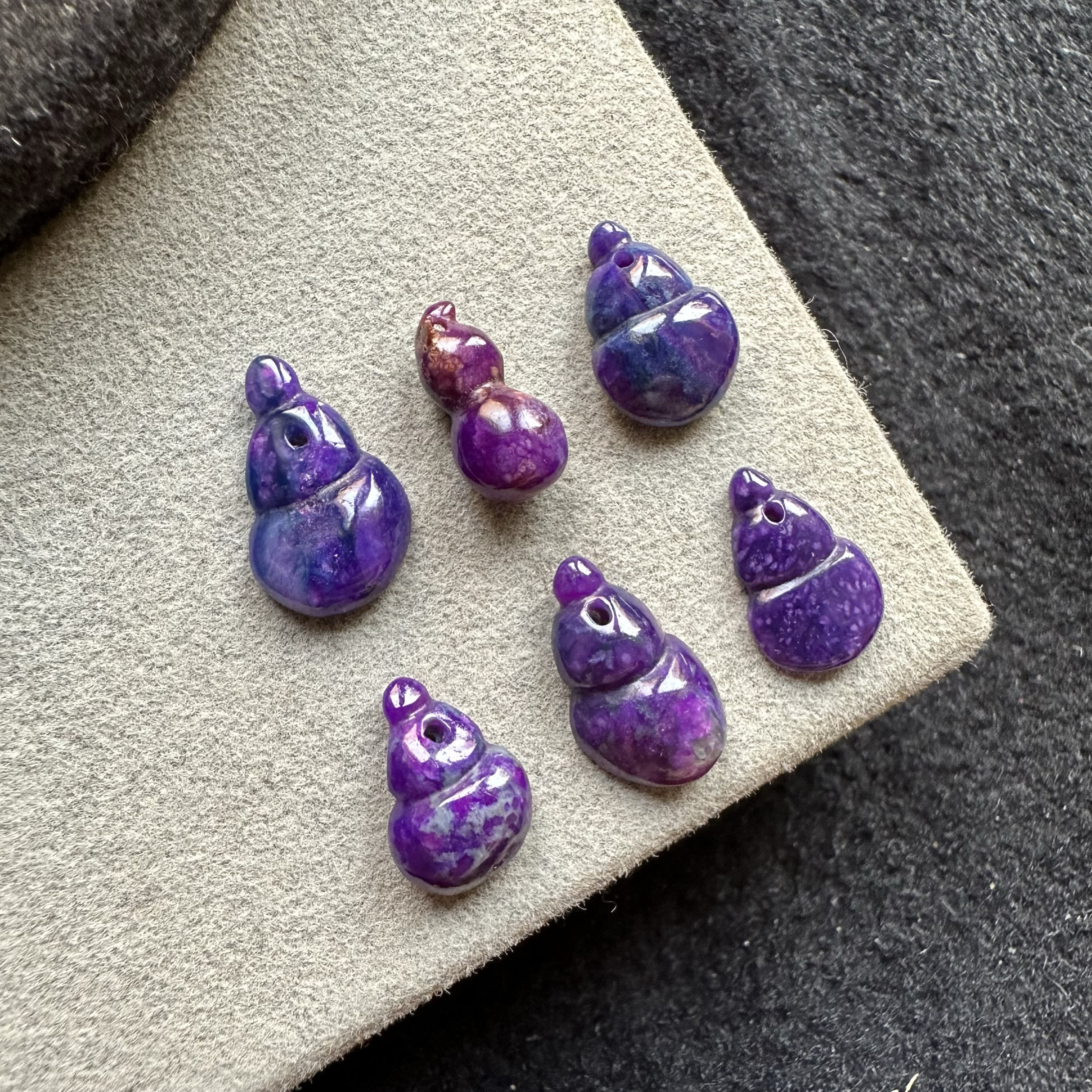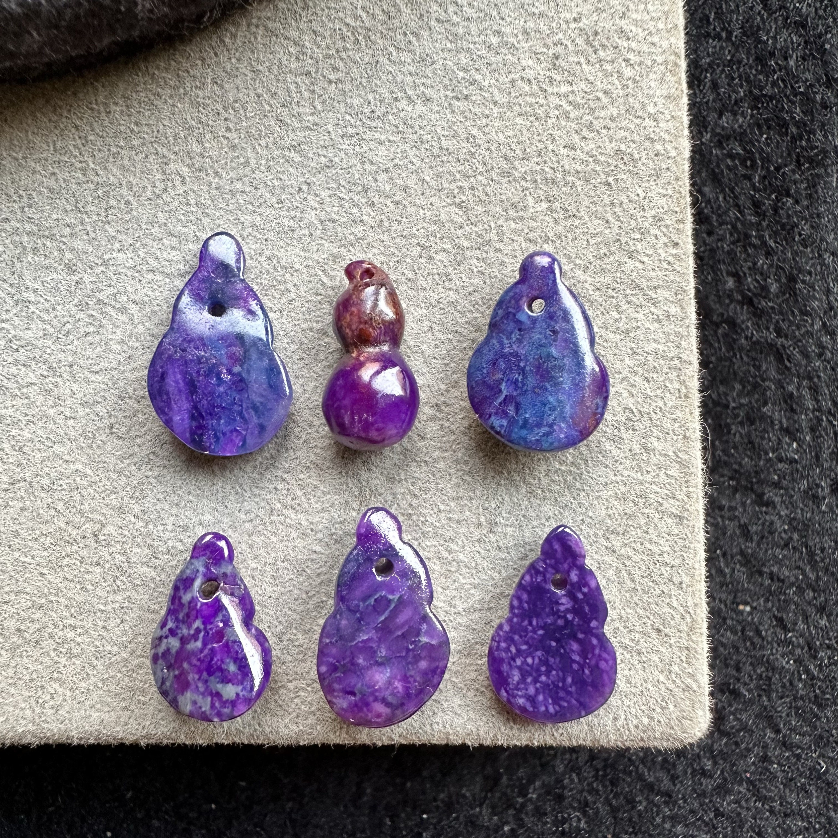 醒走 天然舒俱来老料玉化皇家紫星际蓝紫夜樱花雕刻小葫芦吊坠子