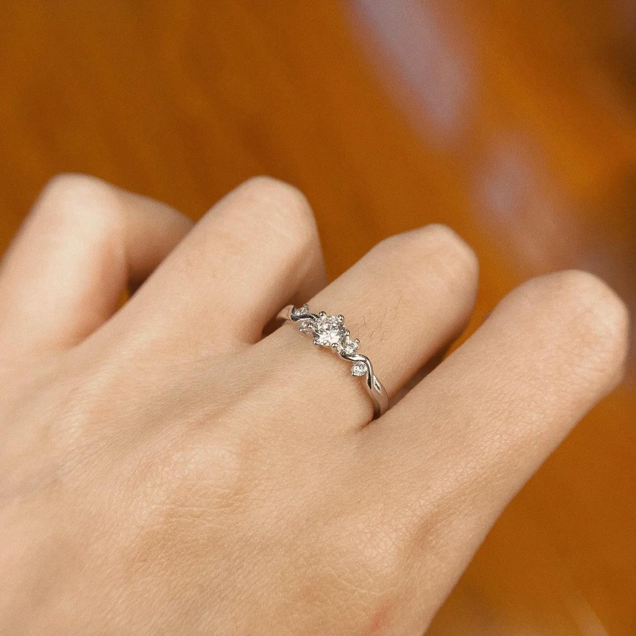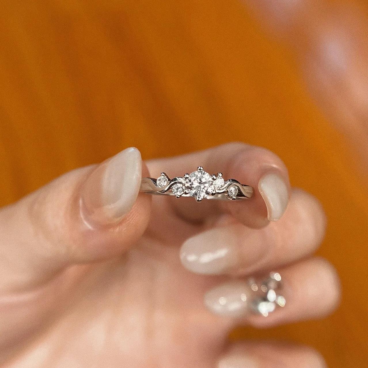 YUDANDUN莫桑戒指蜿蜒40分钻戒指小众设计波浪扭臂镶钻求婚百搭