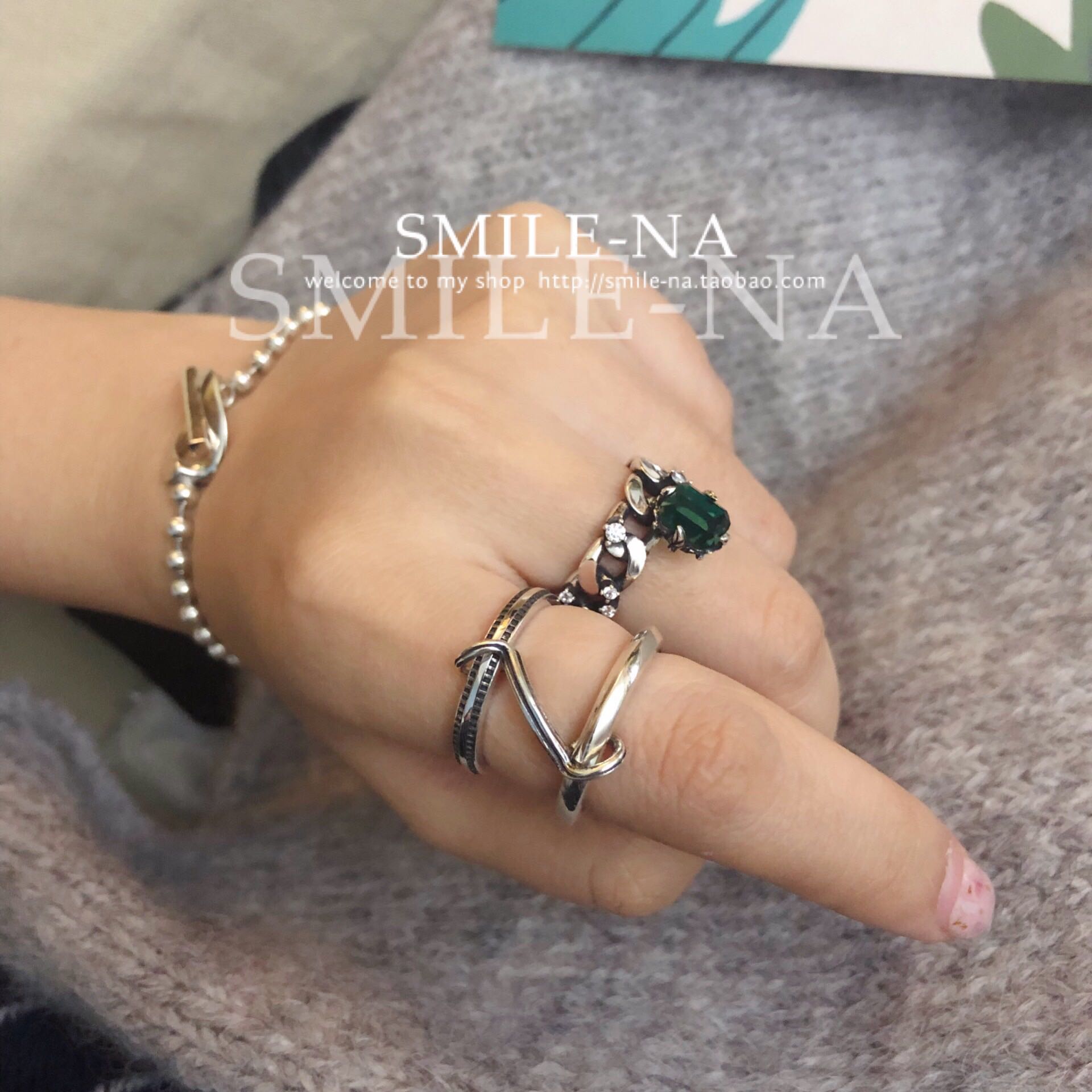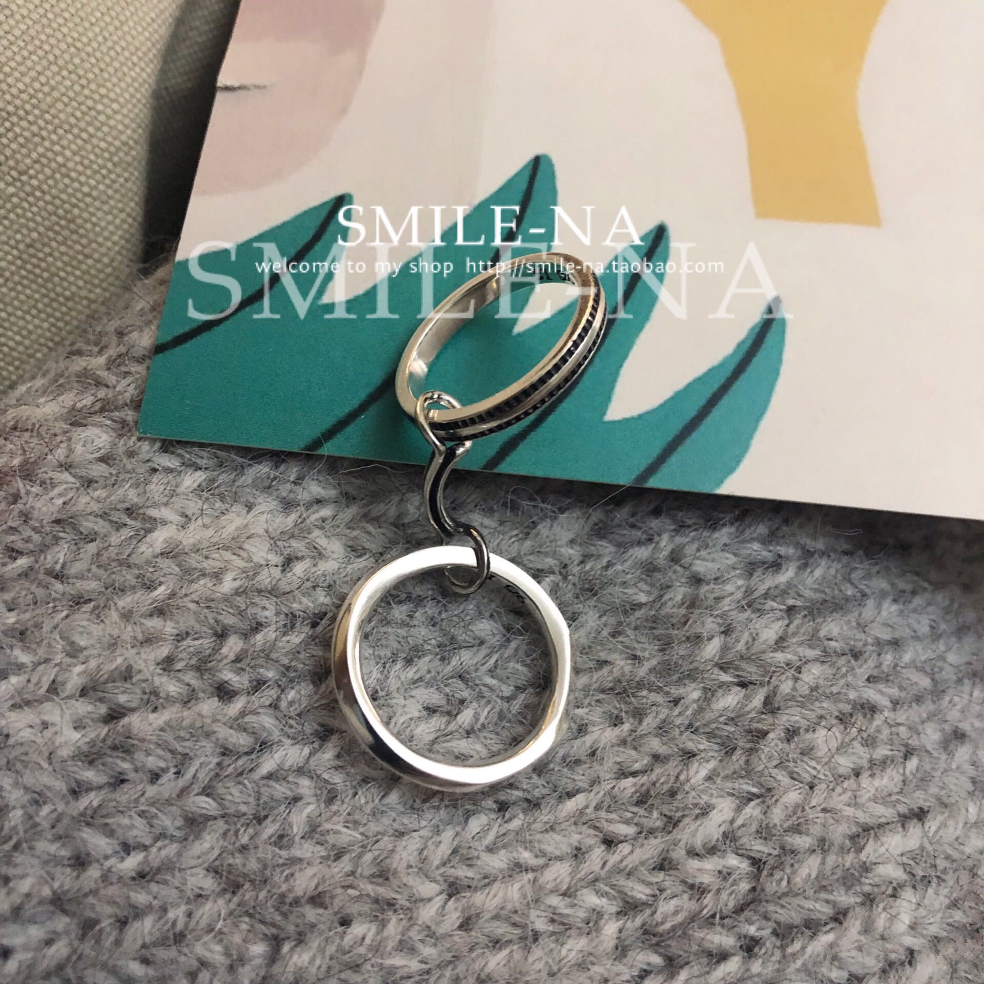 韩国进口手工设计师款925纯银戒指复古双层连环ins指环
