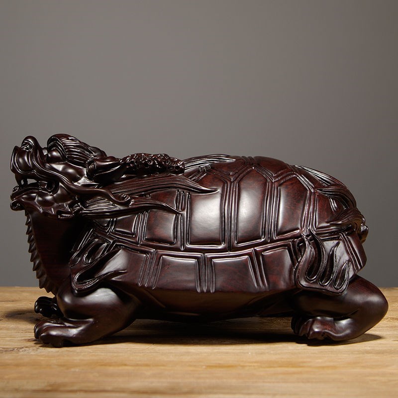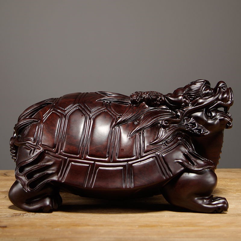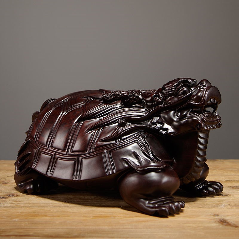 黑檀木雕龙龟摆件实木质龙头龟家居客厅玄关装饰摆设红木工艺礼品