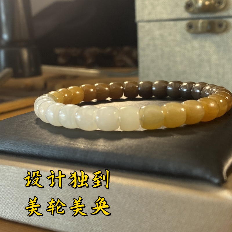 当前位置:首页>商品详情>天然玉石和田白玉且末糖玉渐变直切手串女款老型珠子真玉女款手链