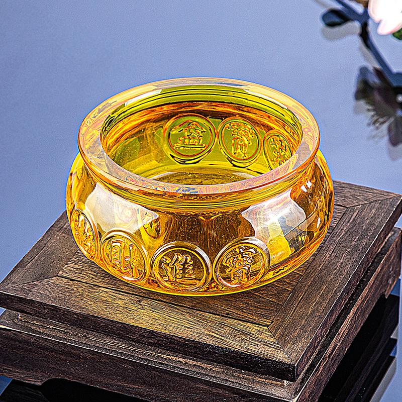 水晶聚宝盆摆件大中小号招财元宝黄水晶球客厅办公室装饰品