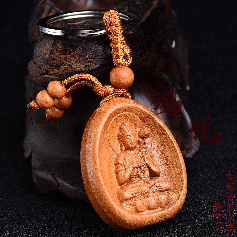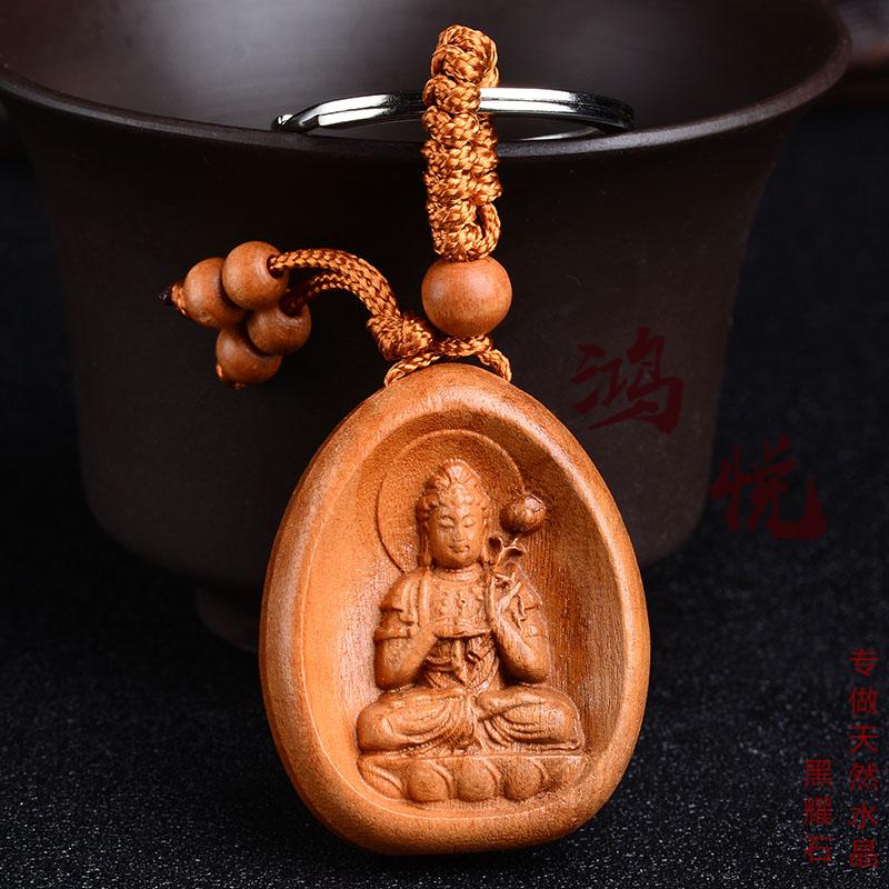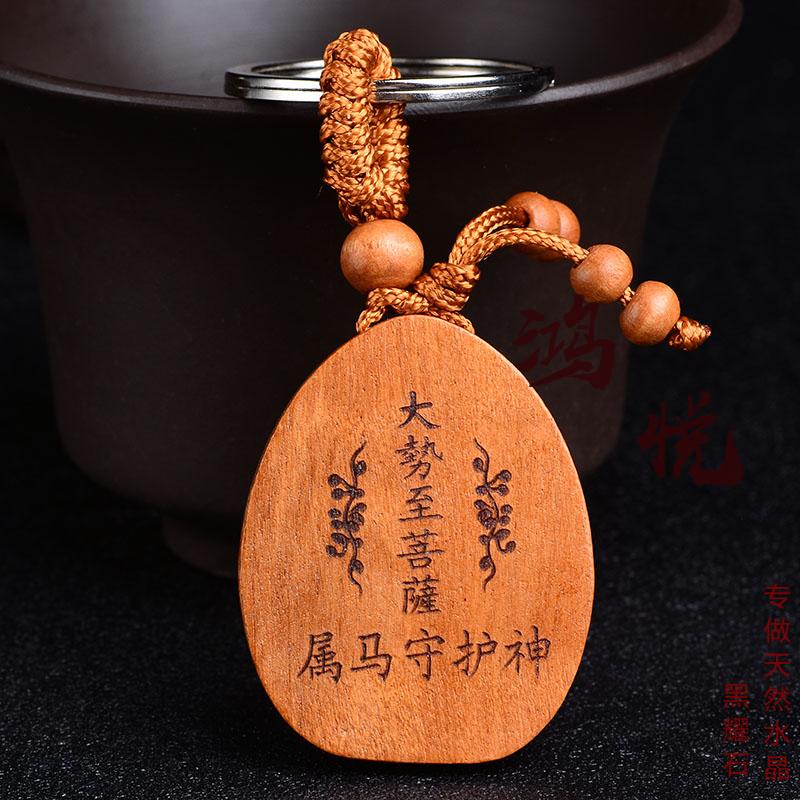 鸿悦桃木本命佛钥匙扣随身包挂大势至菩萨-生肖属马守护神挂件