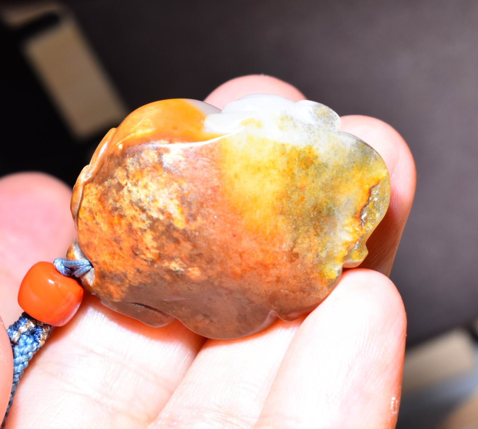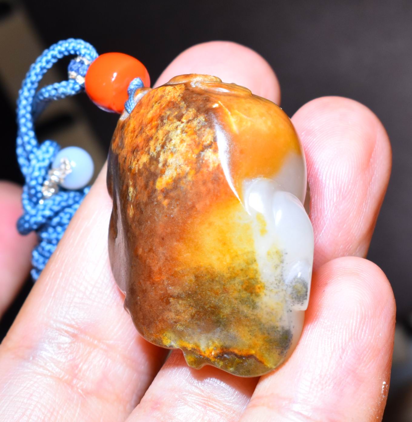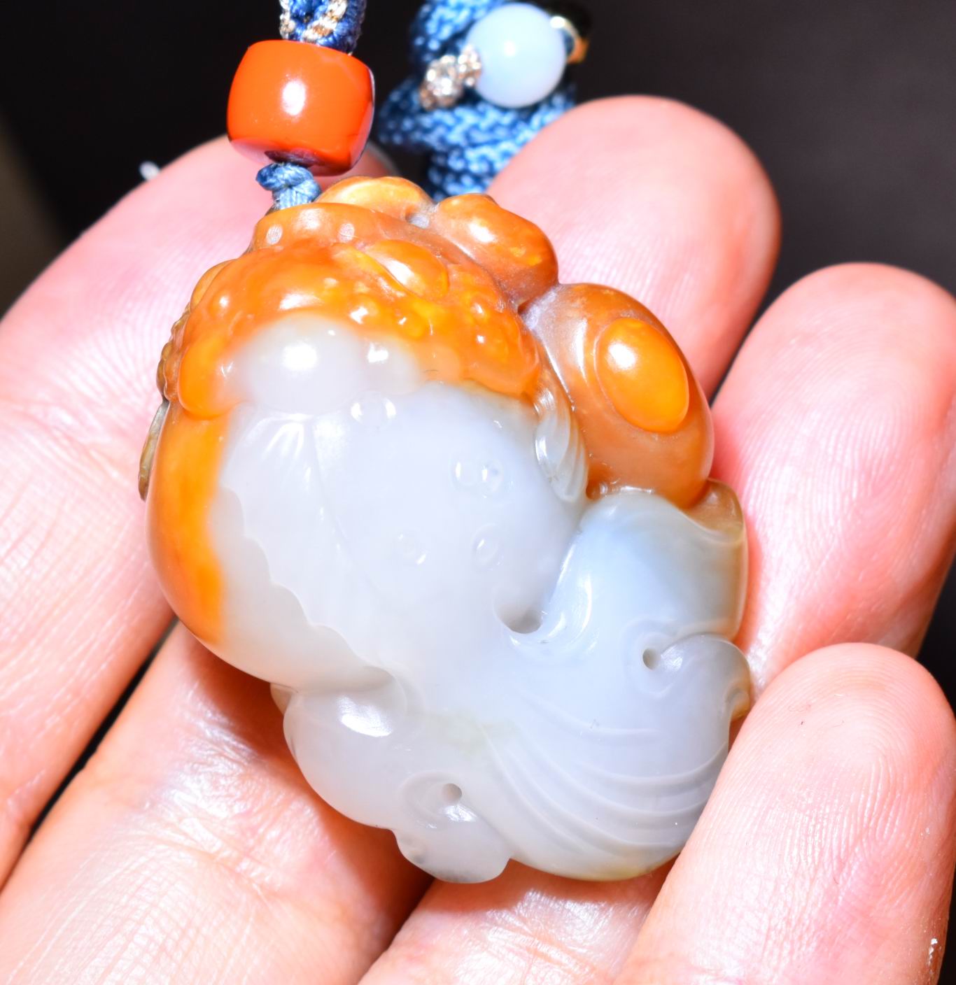 新疆的猫24.0克,羊脂白玉红沁籽料苏工“金玉满堂”挂件SBH198