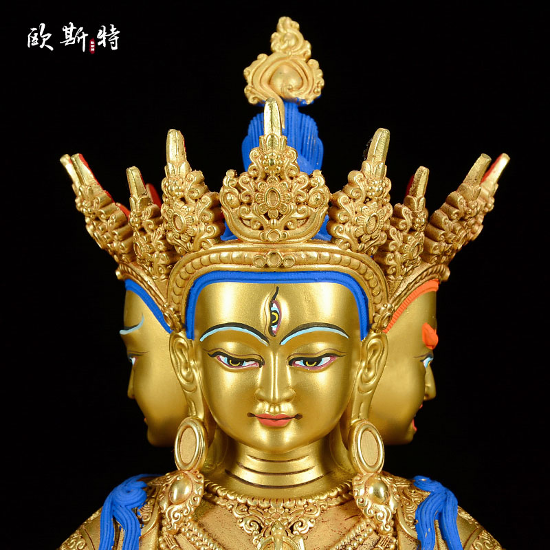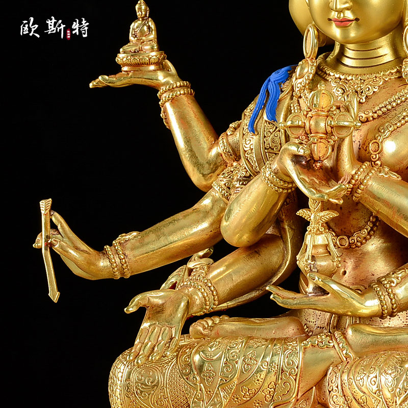 欧斯特 尊胜铜像 西藏铜鎏金装饰用品桌面家居中式客厅玄关摆件