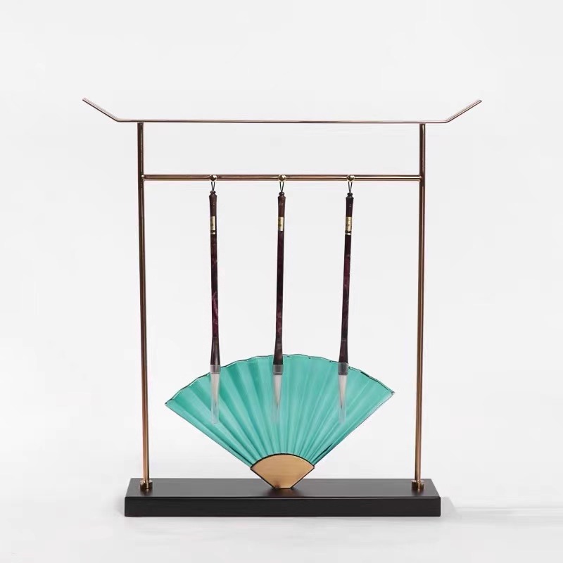 新中式领导办公室书房摆件博古架茶室书柜软装饰品毛笔架书挡组合