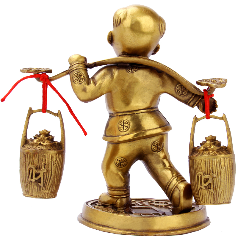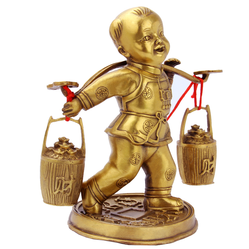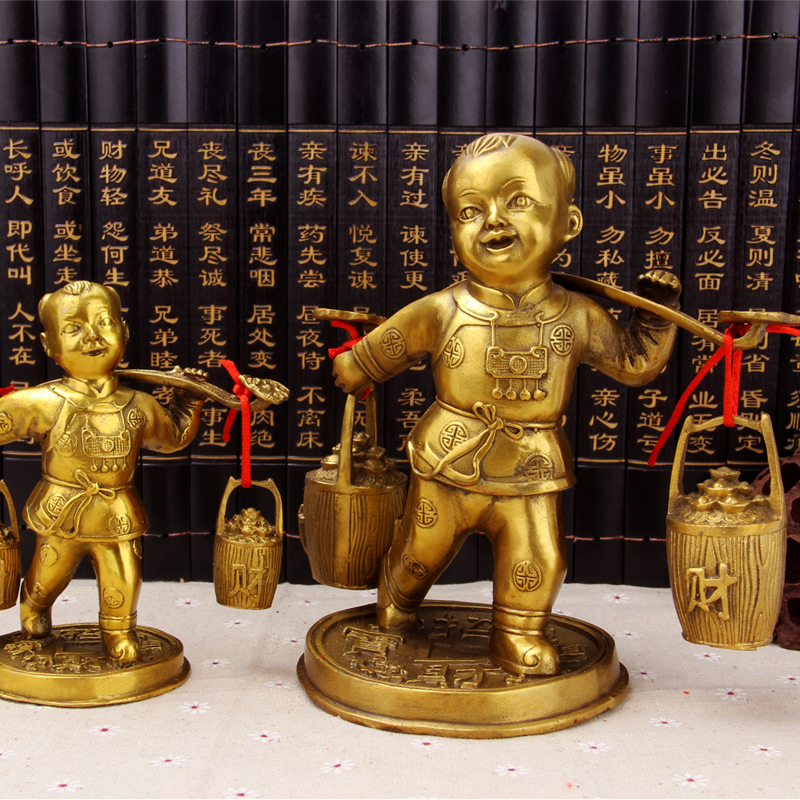 铜挑财运财童子摆件送财善财童子家居装饰铜工艺礼品摆设