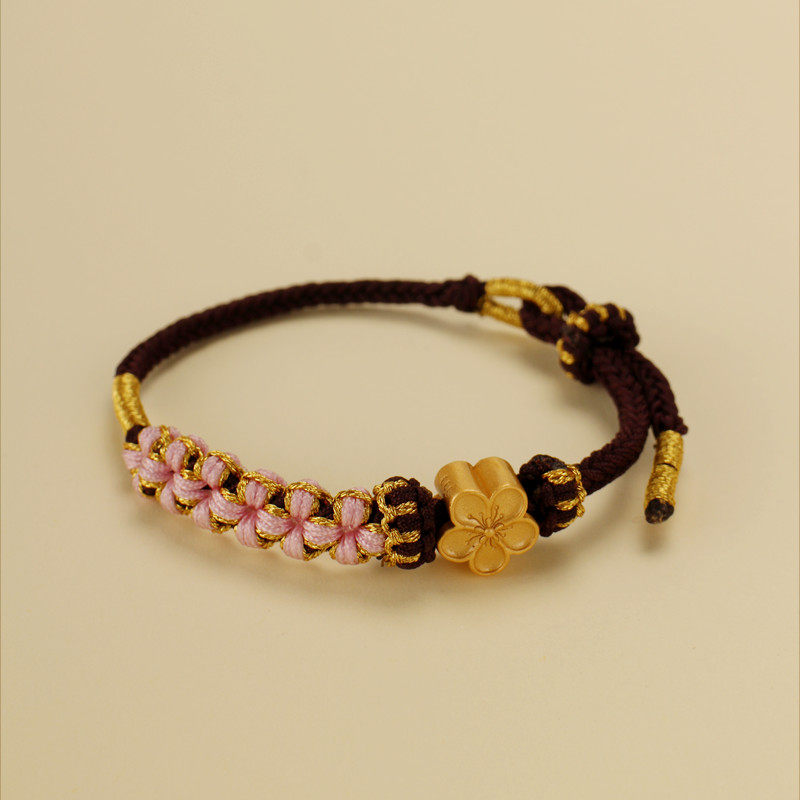 桃花手绳手工编织绳手链编绳成品黄金转运珠串珠配绳可穿大孔珠