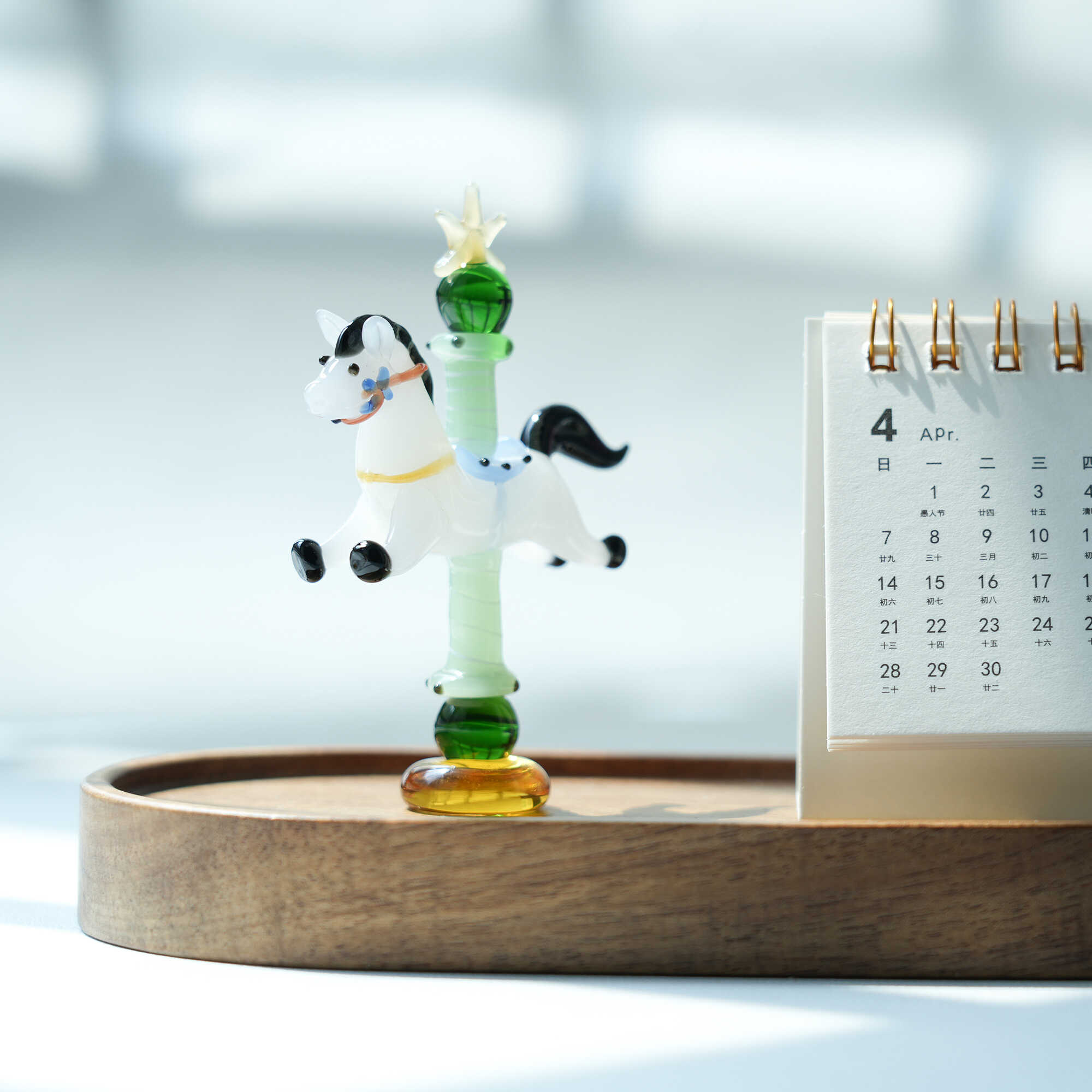 博山琉璃灯工旋转木马摆件纯手工马到成功家居桌面装饰品生日礼物