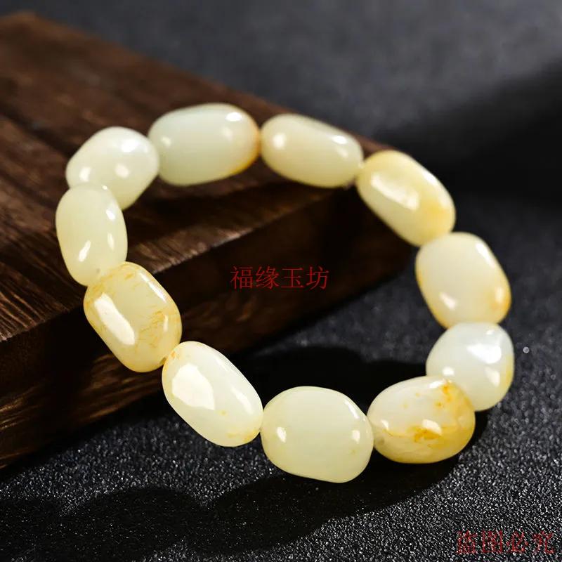 精品天然和田玉籽料手串青白玉随形手链男女款带皮玉石珠子手饰