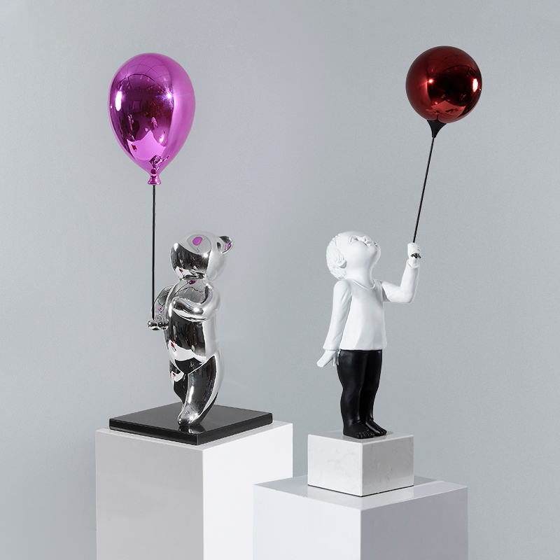 治愈系气球男孩摆件北欧客厅电视柜卡通雕塑O玄关桌面家居装饰品