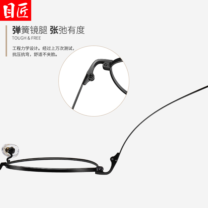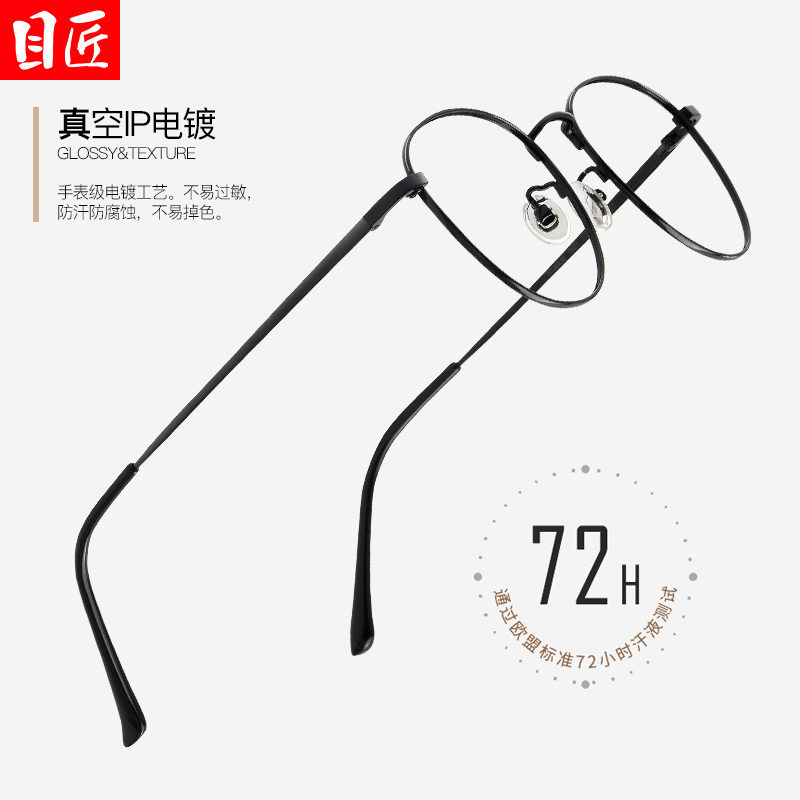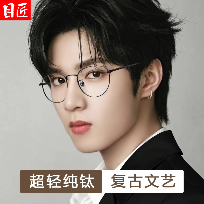 超轻纯钛黑色边框圆框近视眼镜框男款可配度数椭圆形大脸大镜架女