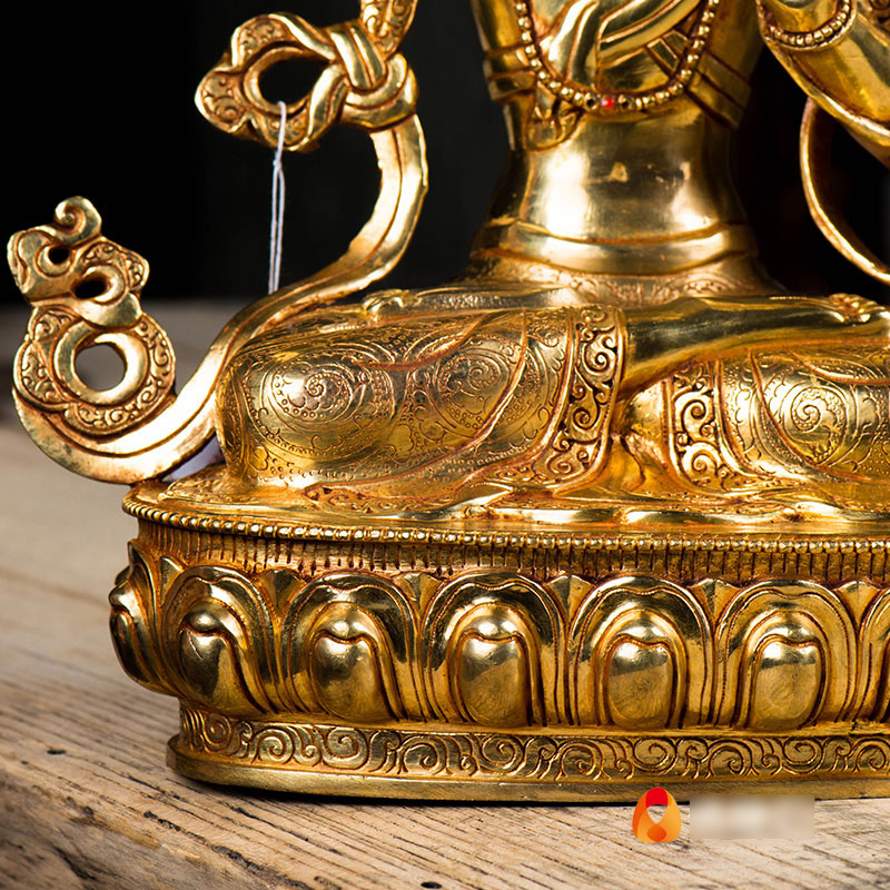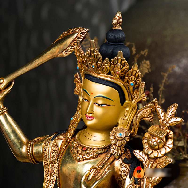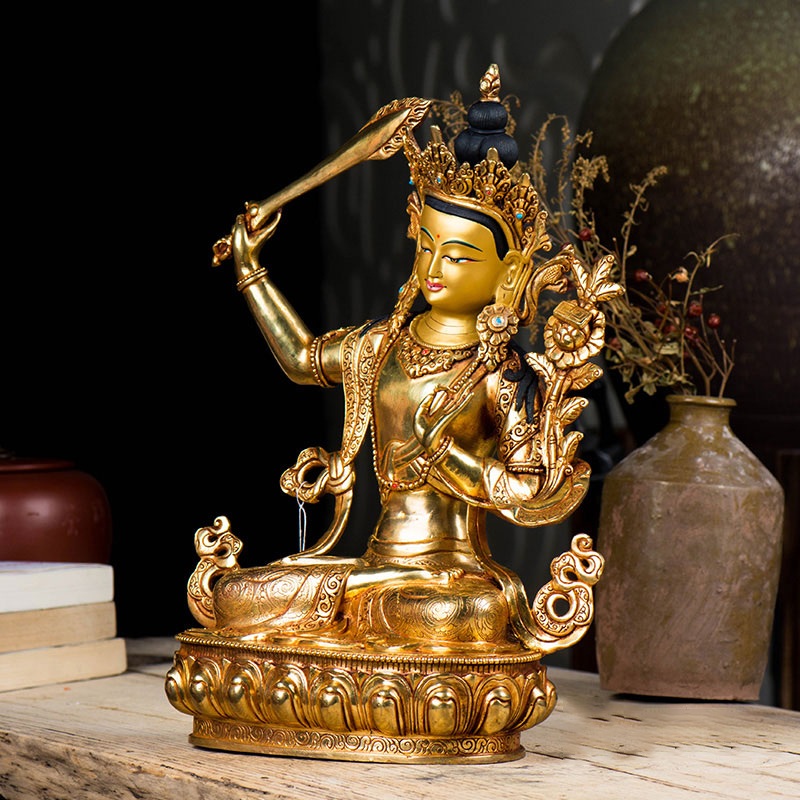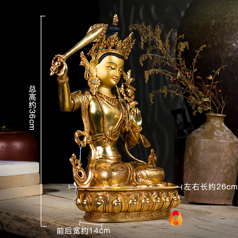 文殊菩萨铜像家用铜像10寸铜全鎏金尼泊尔文殊师利室内摆件