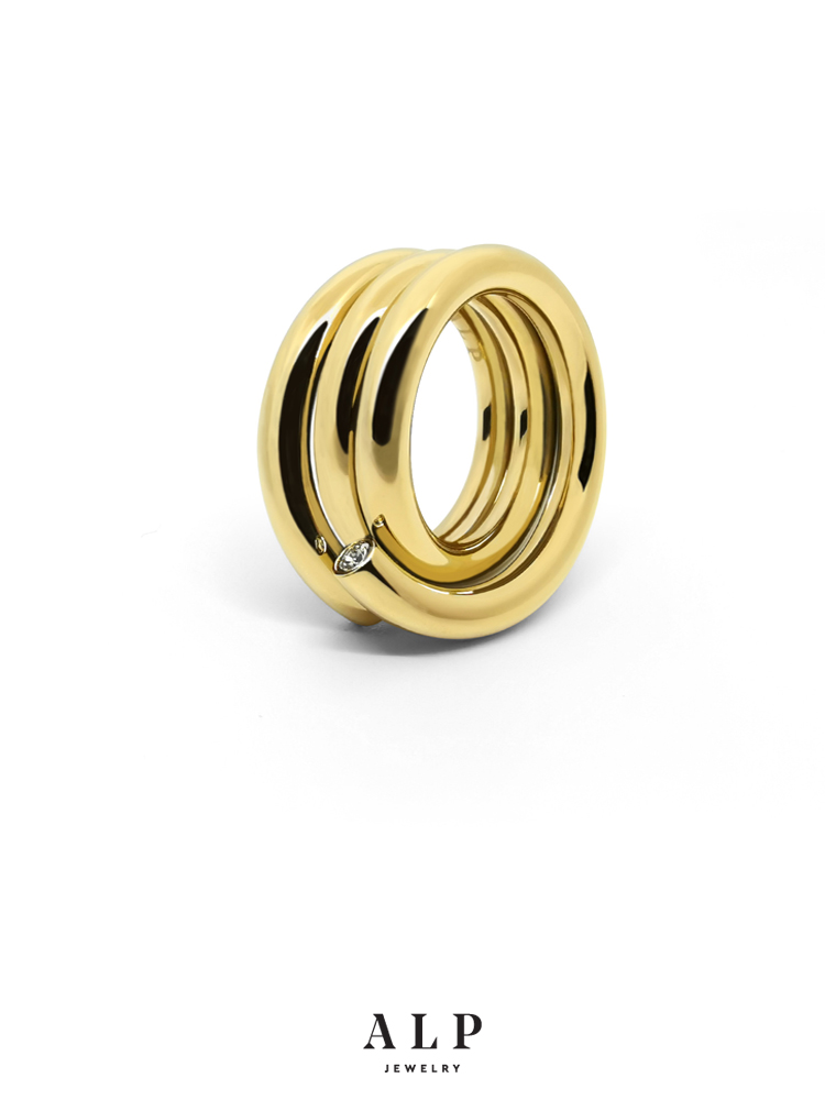官方ALP JEWELRY归来系列法式赫本风独特水晶真空镀金素圈戒指