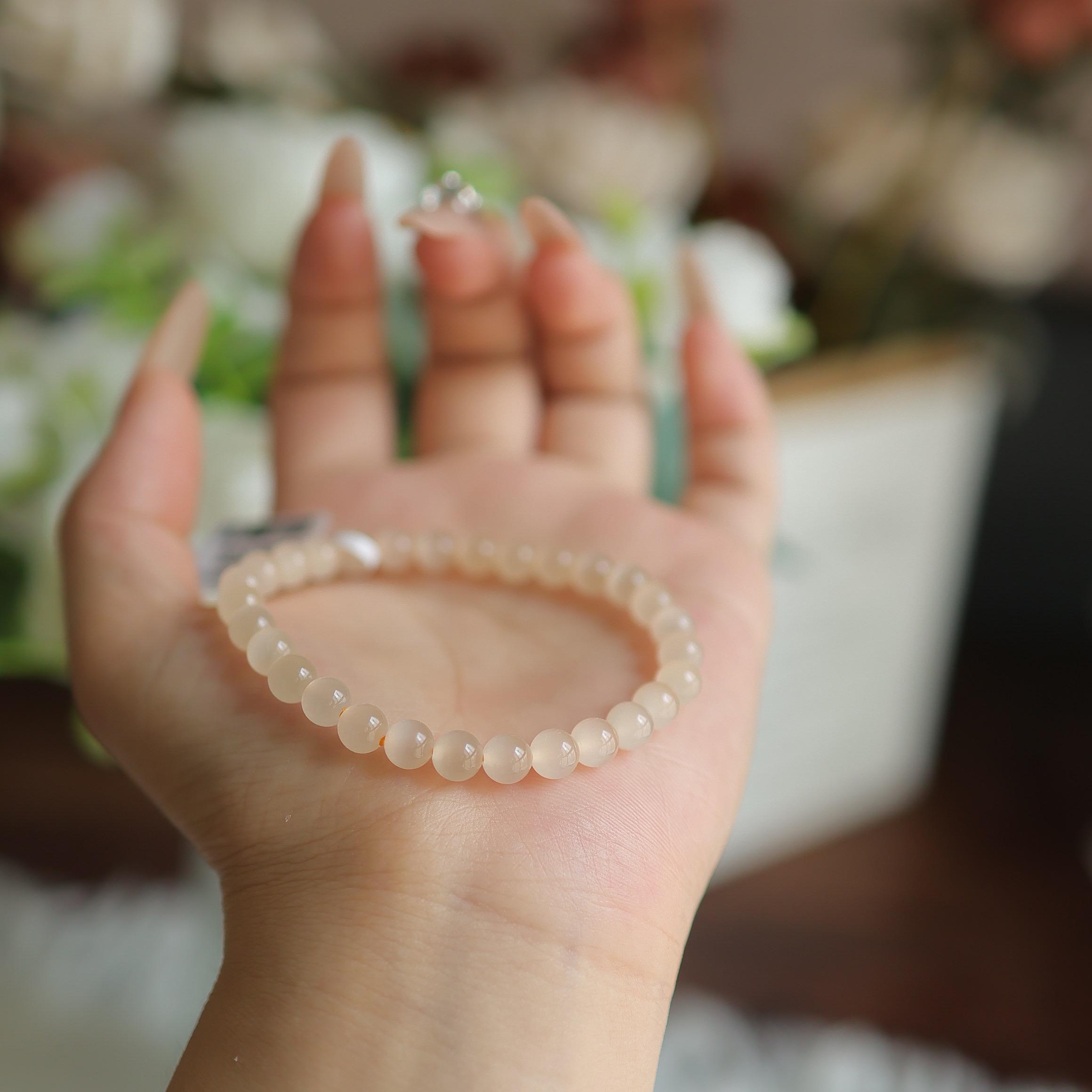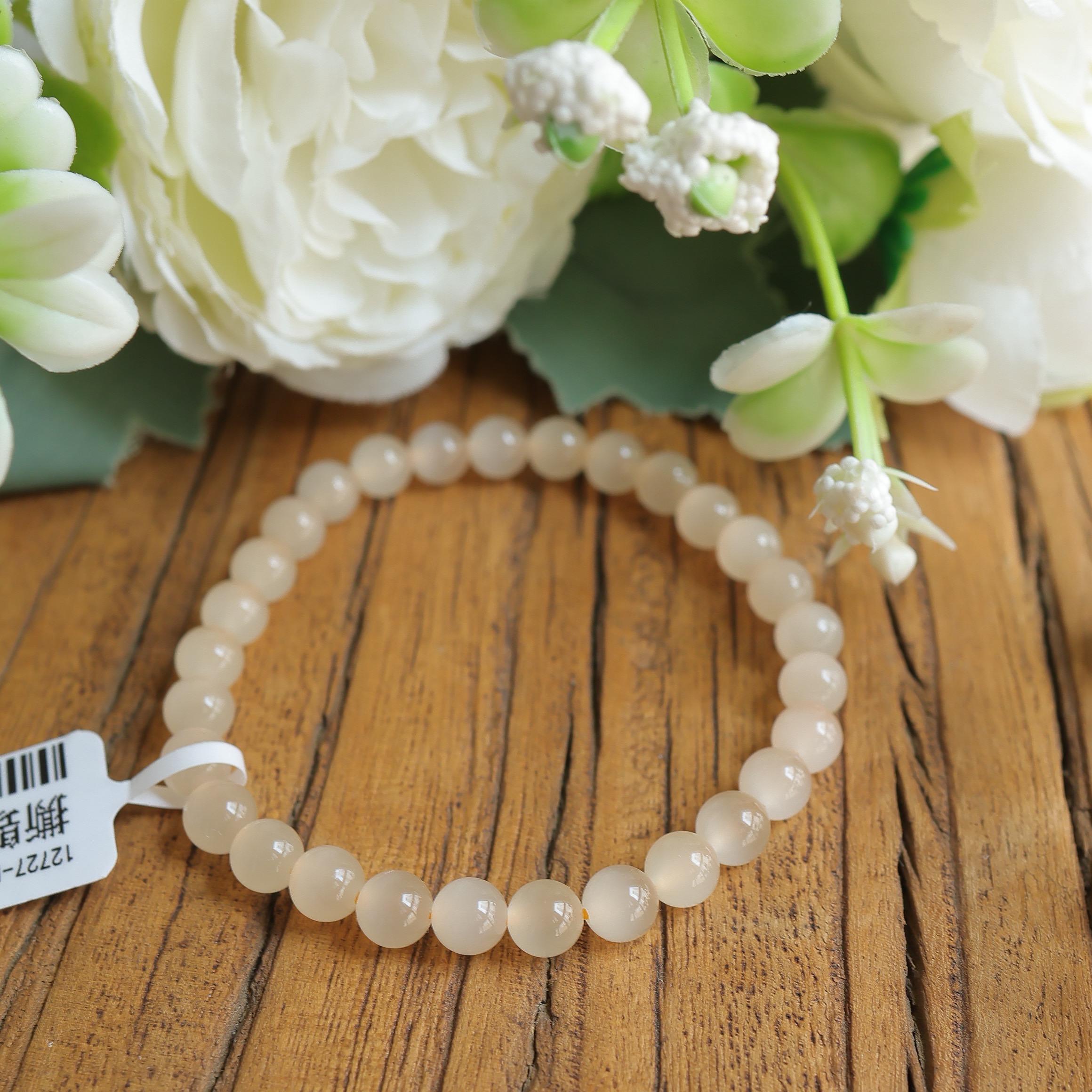天然和田玉 冰白冰粉猫眼单圈 6mm圆珠 起荧光 毕业级 货号12727