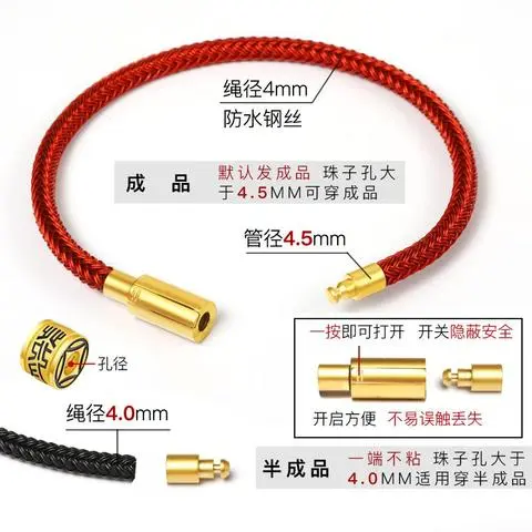 钢丝皮绳转运珠红绳手链周家CTF手绳硬金不锈钢半成品编织4mm可穿