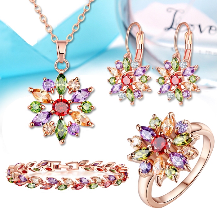 韩国蒙娜丽莎水晶七彩锆石戒指时尚百搭学生指环炫彩玫瑰金饰品女