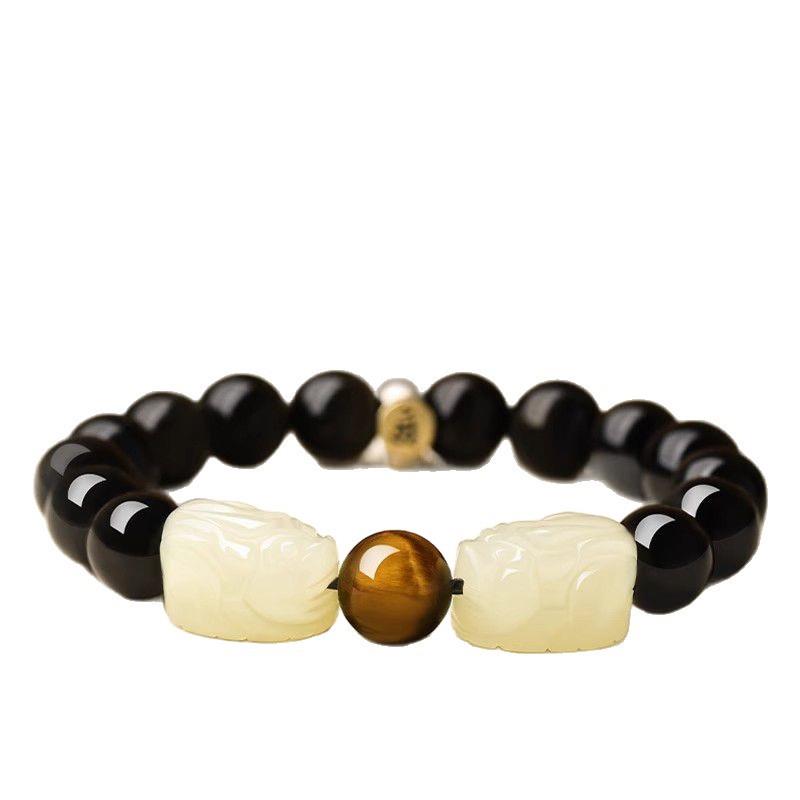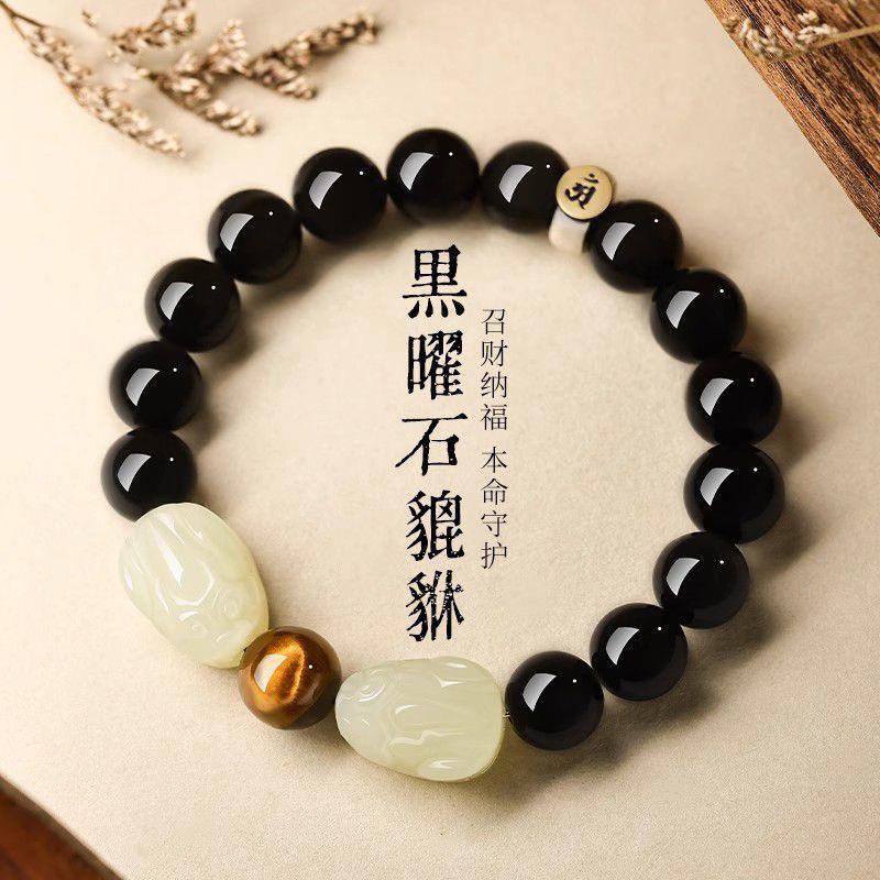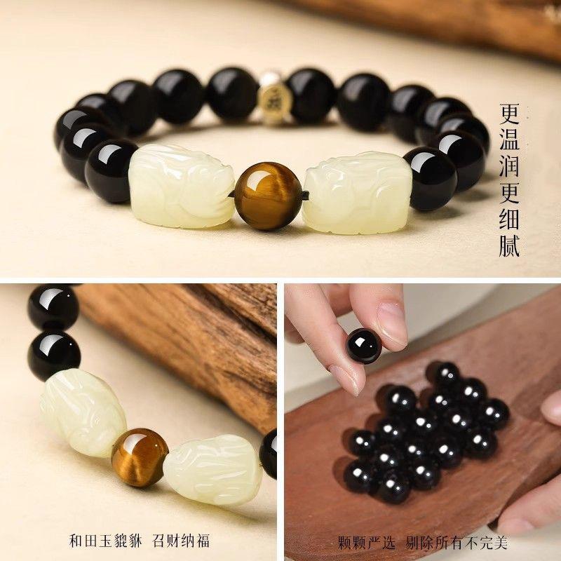 2025黑曜石手串男和田玉招财貔貅手链女本命年皮丘佛珠送情侣节日