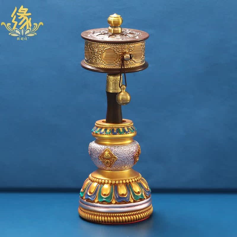 藏族手摇转金筒底座莲花座手持转金轮家用摆件招财箭插座转金桶