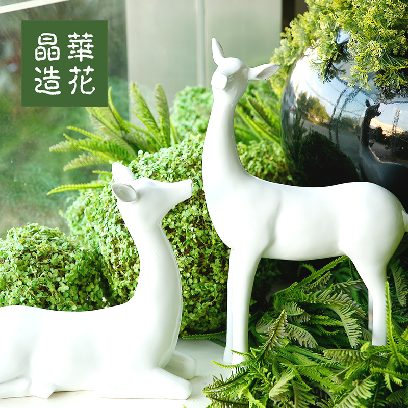 晶华造花鹿兔子动物摆件简欧家居装饰圣诞麋鹿圣诞节装饰用品