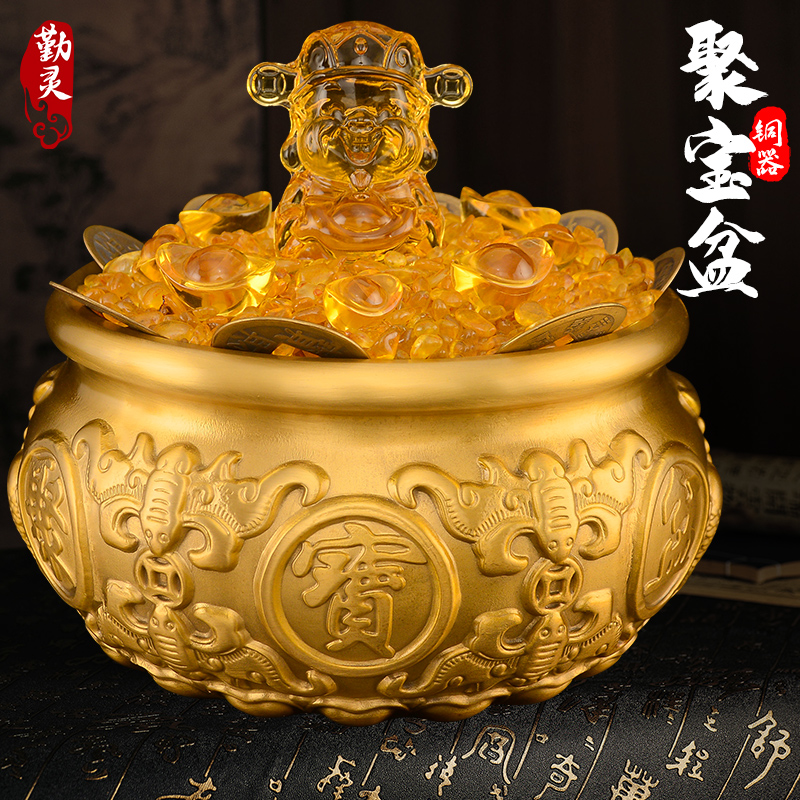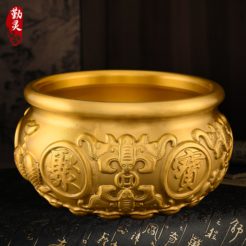 铜聚宝盆a摆件中式客厅玄关店铺前台纯工艺礼品摆饰黄铜米缸存钱