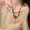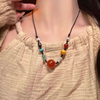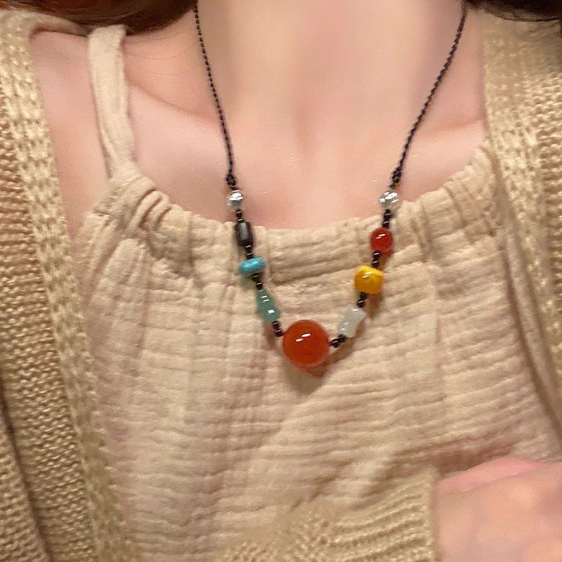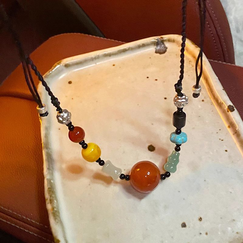 新中式复古民族风吊坠项链女夏天编绳串珠配饰玛瑙珠子装饰锁骨链