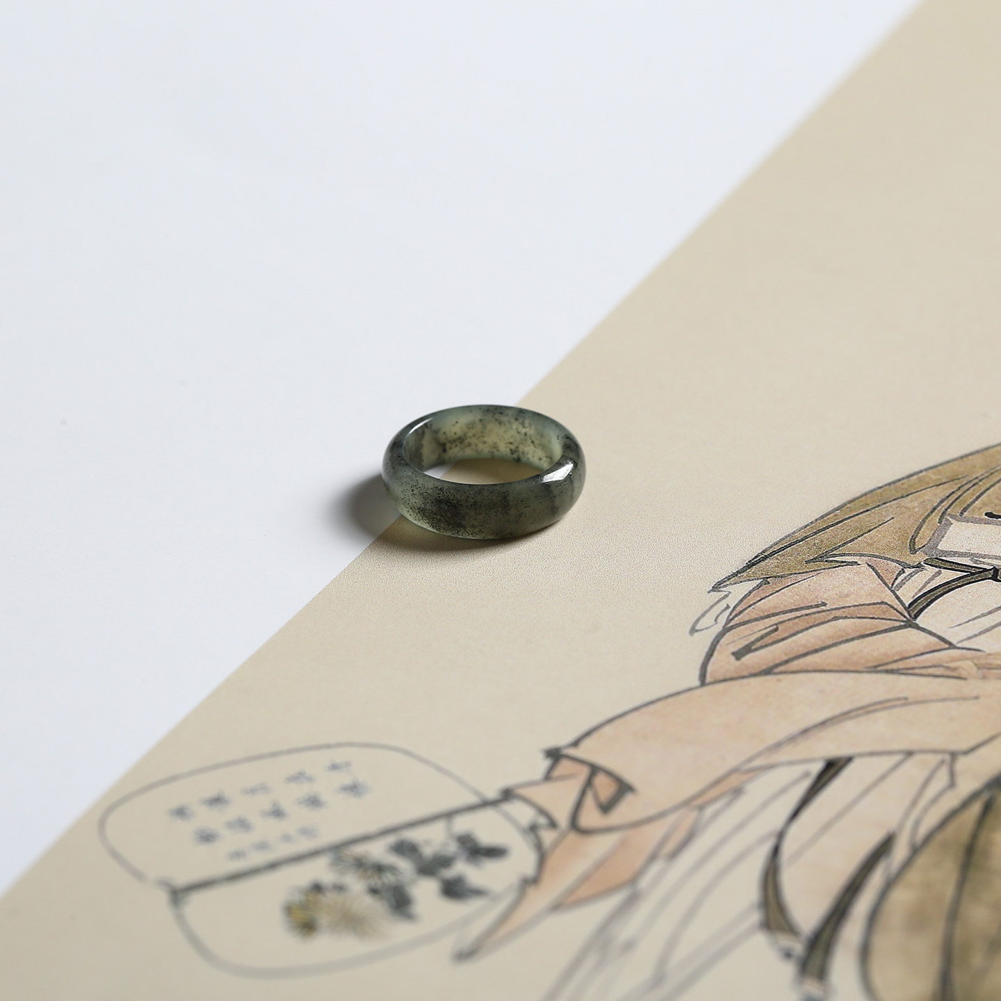 1号戒指 新疆和田玉青花小尺码圆弧素圈指环 尾戒 430