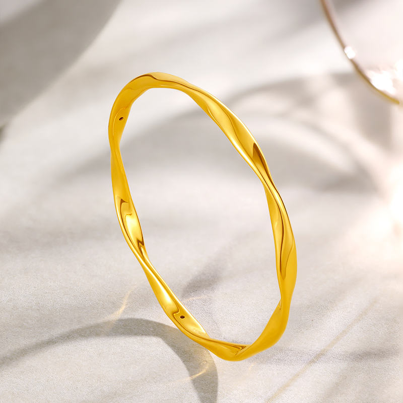 周六福莫比乌斯环黄金手镯女款5D计价足金镯子送女友节日礼物