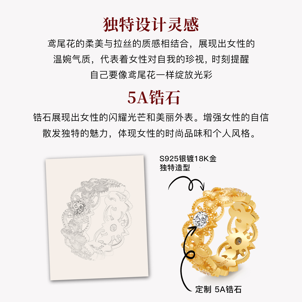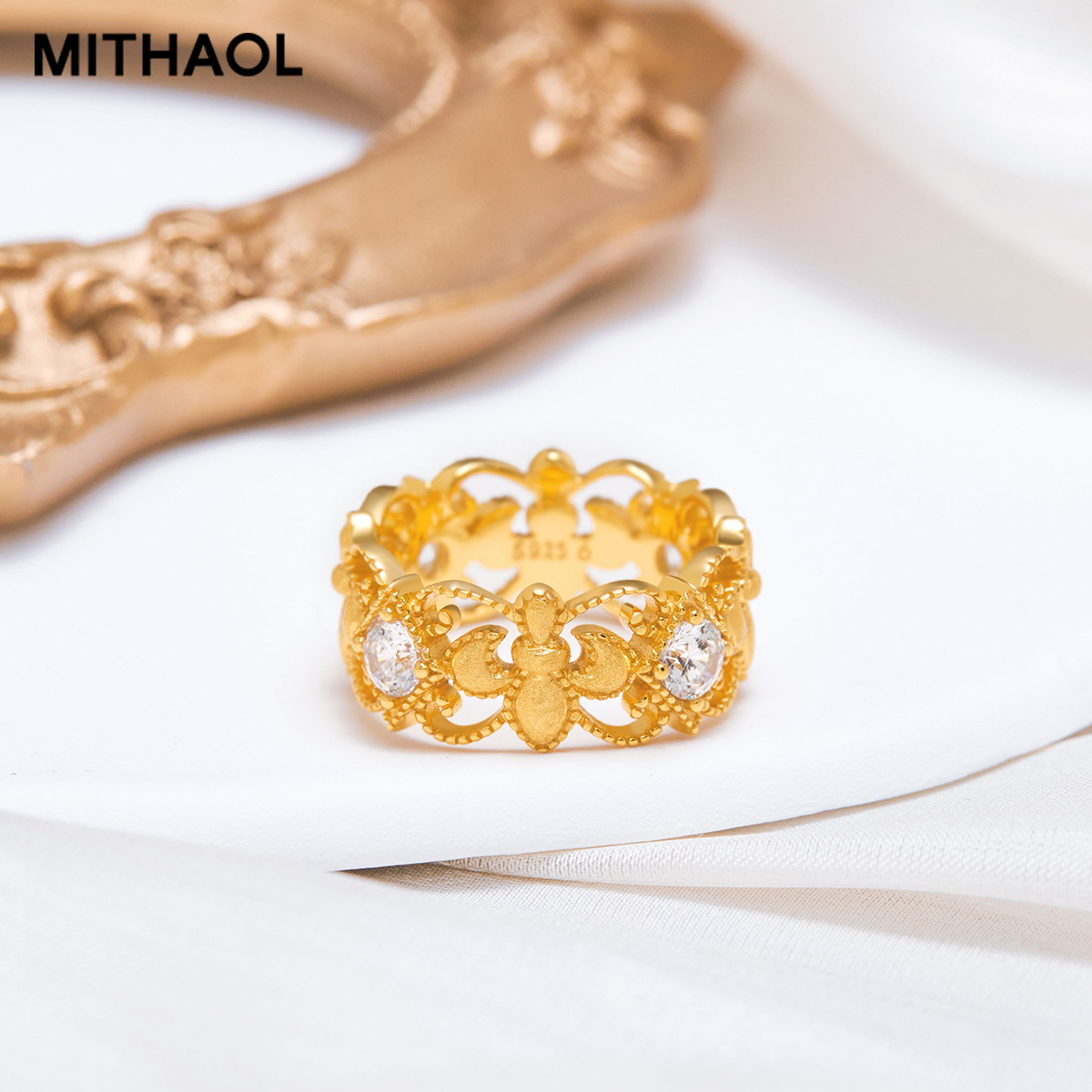 MITHAOL中古鸢尾花拉丝戒指女 轻奢小众高级感蕾丝指环女款银镀金