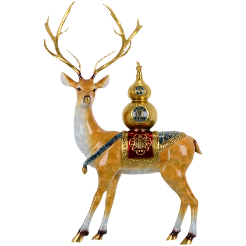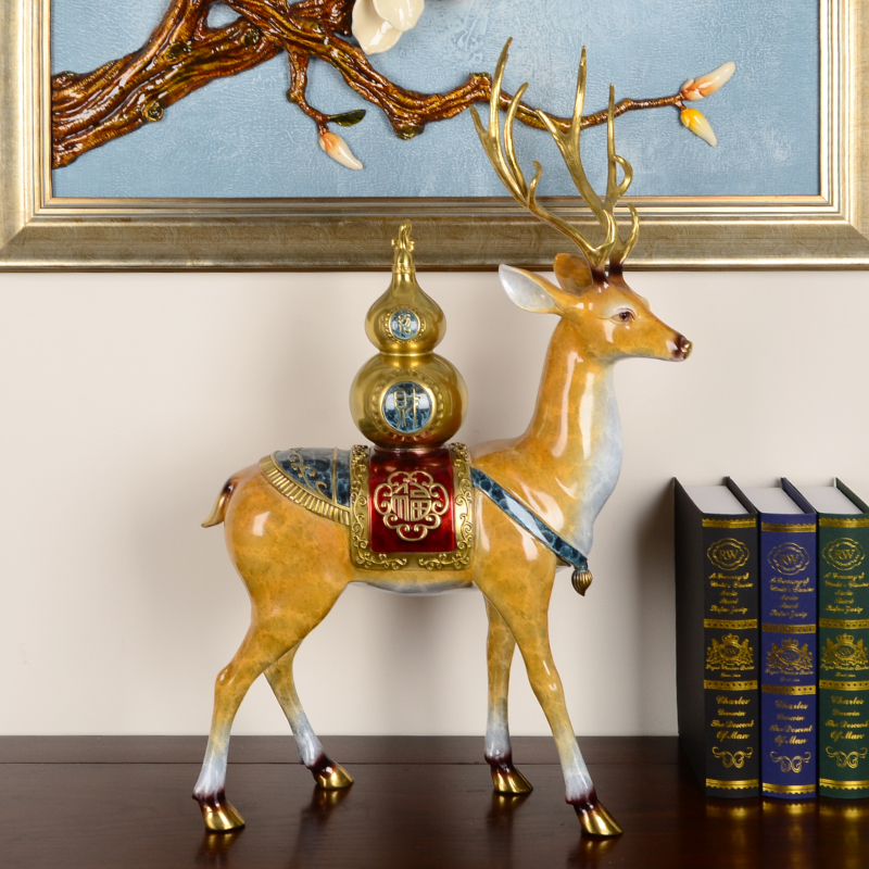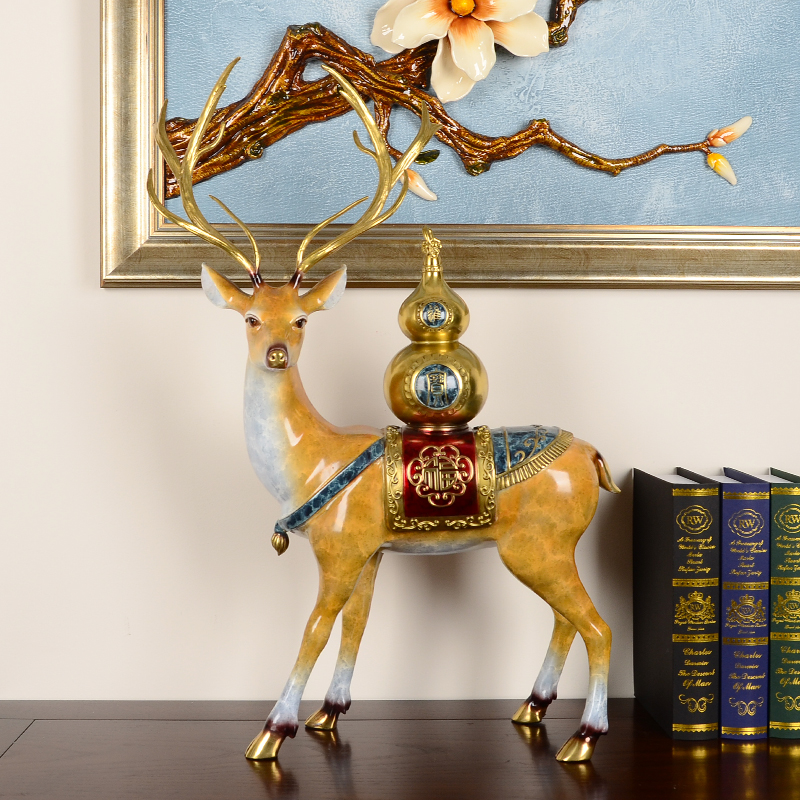 欧式奢华古典彩黄铜招财进宝福鹿桌面摆件客厅玄关寓意送礼装饰品