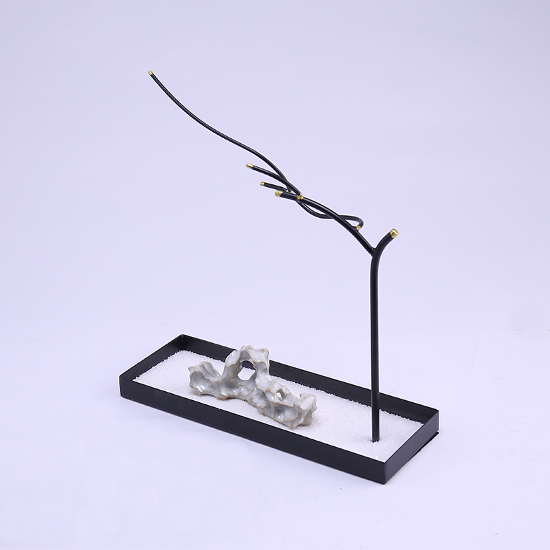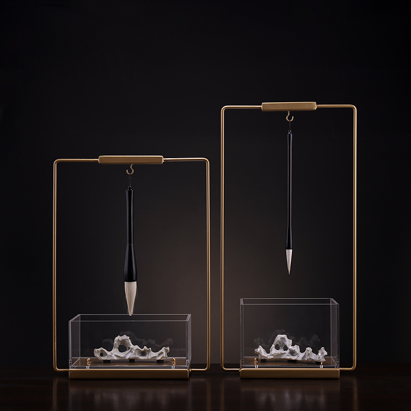 样板间新款别墅办公室桌面文房四宝铁艺软装饰品新中式毛笔架摆件