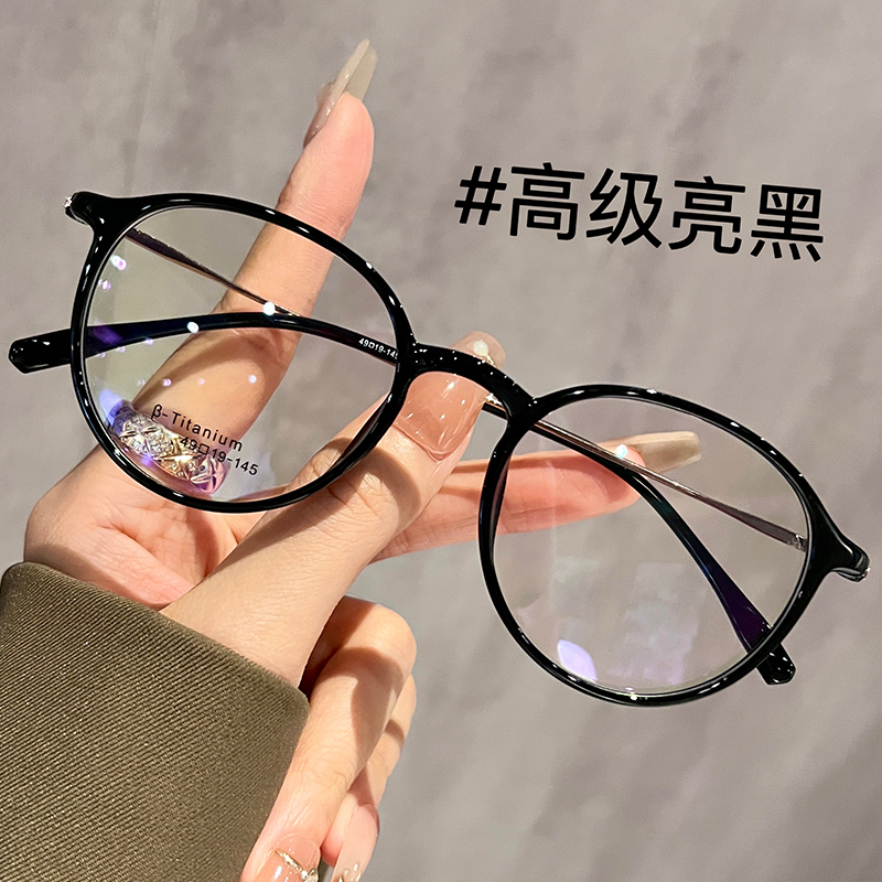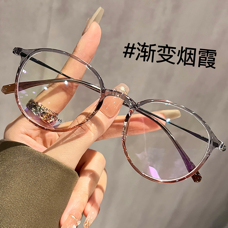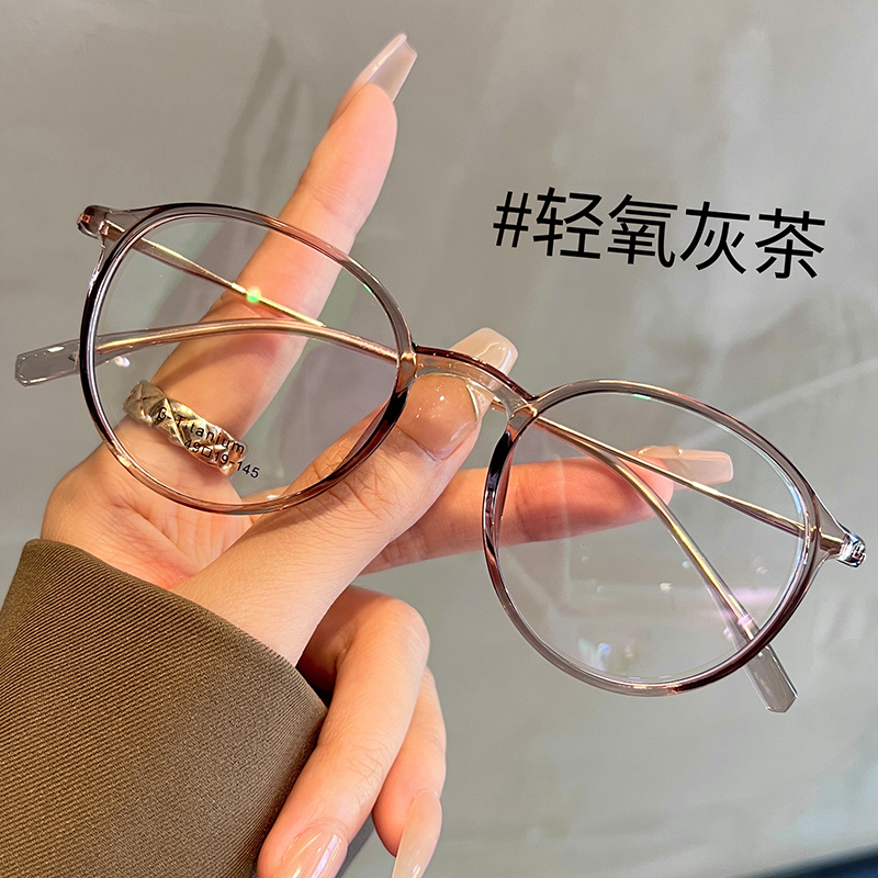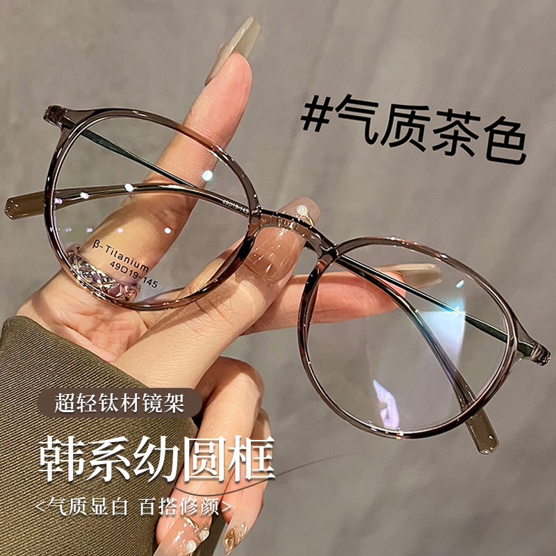 超轻钛架椭圆框茶色眼镜女近视可配有度数素颜显白方圆脸眼睛镜架