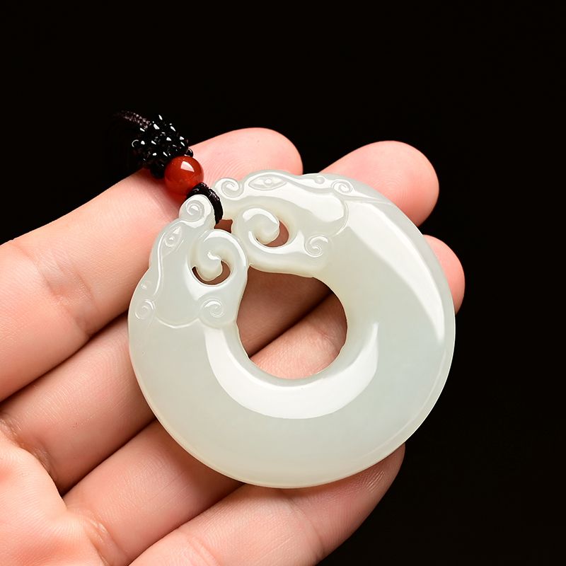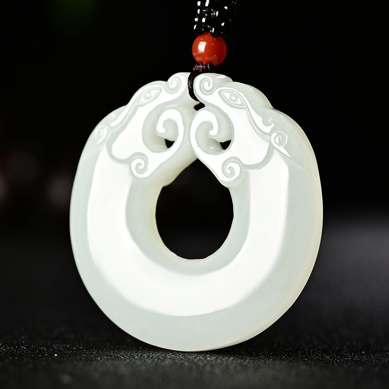 天然和田色双龙护主平安扣吊坠男女玉石项链挂玉坠平安如意玉佩