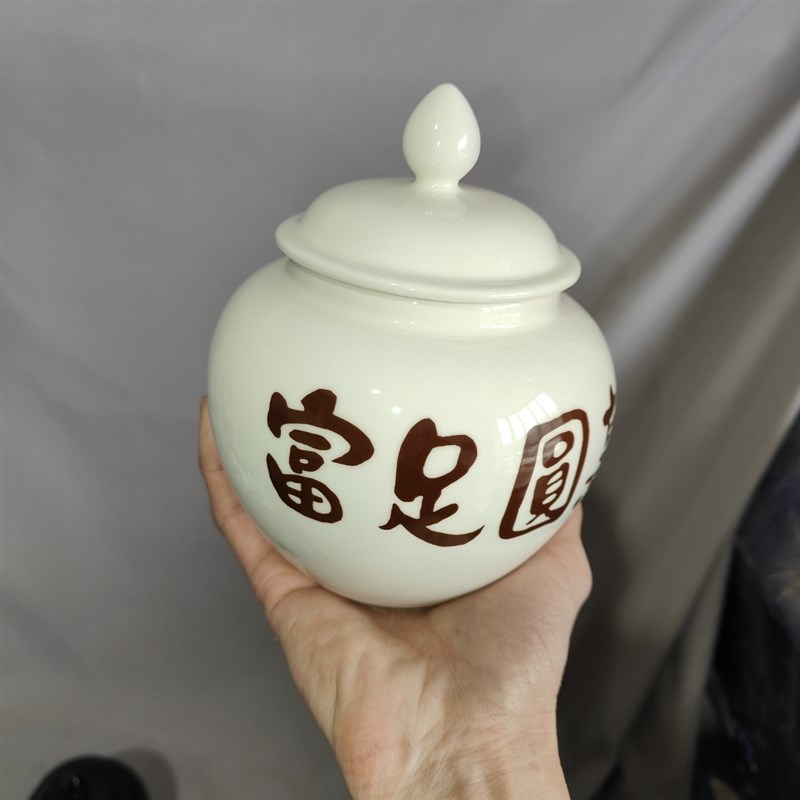 小号700ml富足圆熟白色罐咖啡色字白咖易经聚宝盆 道学陶瓷罐摆件
