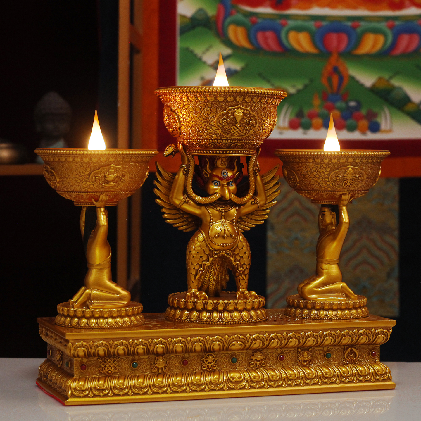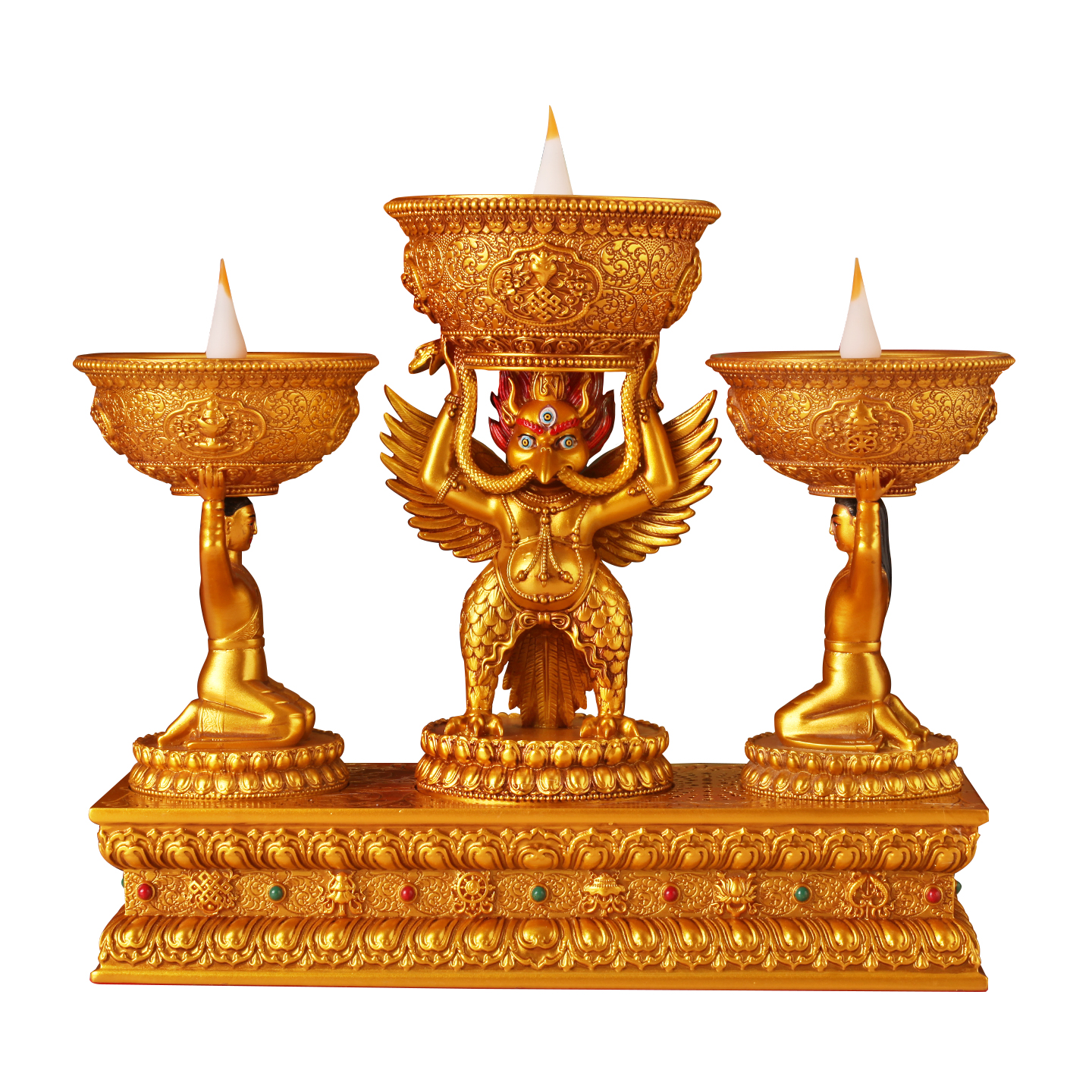 大鹏鸟天女坛城播摆器白放塔内置金创意装饰摆件财神树脂酥油灯