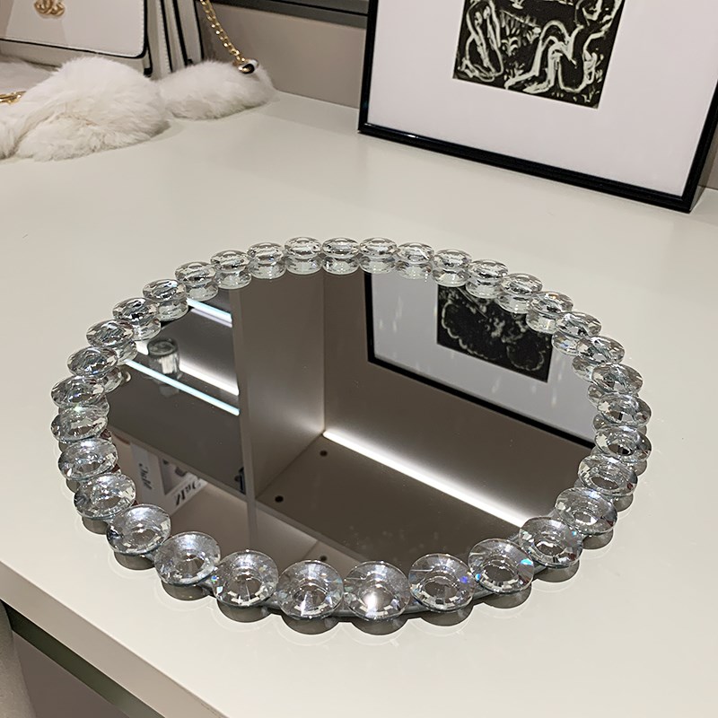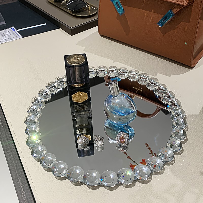 水晶镜面托盘轻奢高级感家用客厅茶几摆件装饰品桌面香水收纳摆件