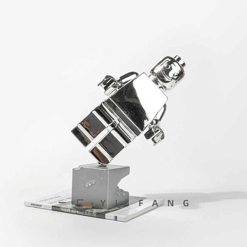一方创意银色笑脸机器人积木卡通摆件样板间售楼处儿童房书房装饰