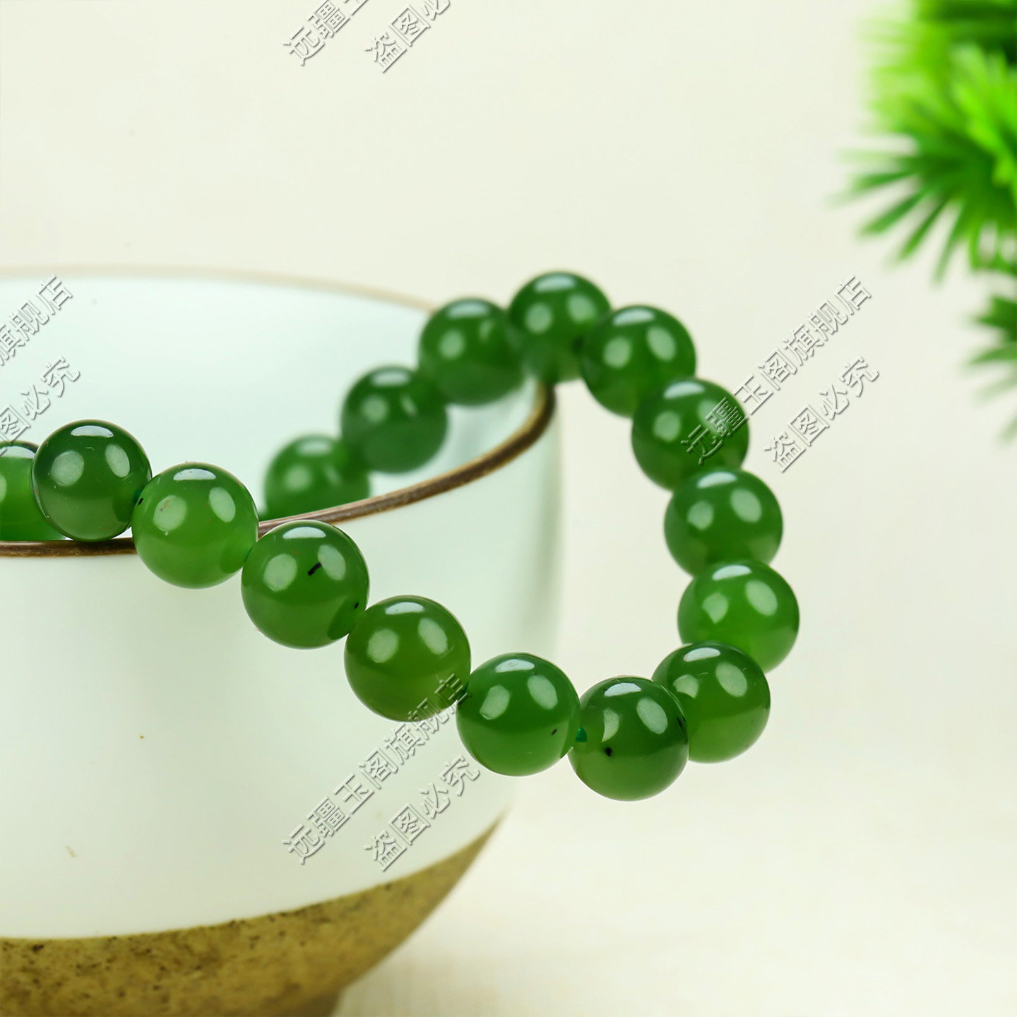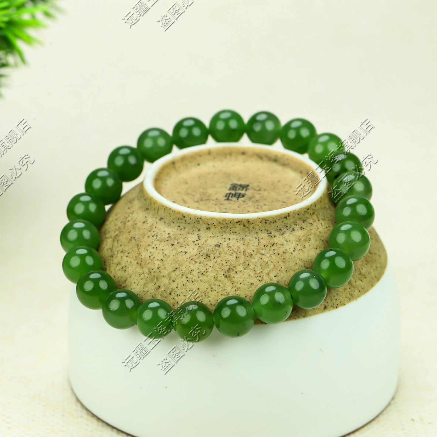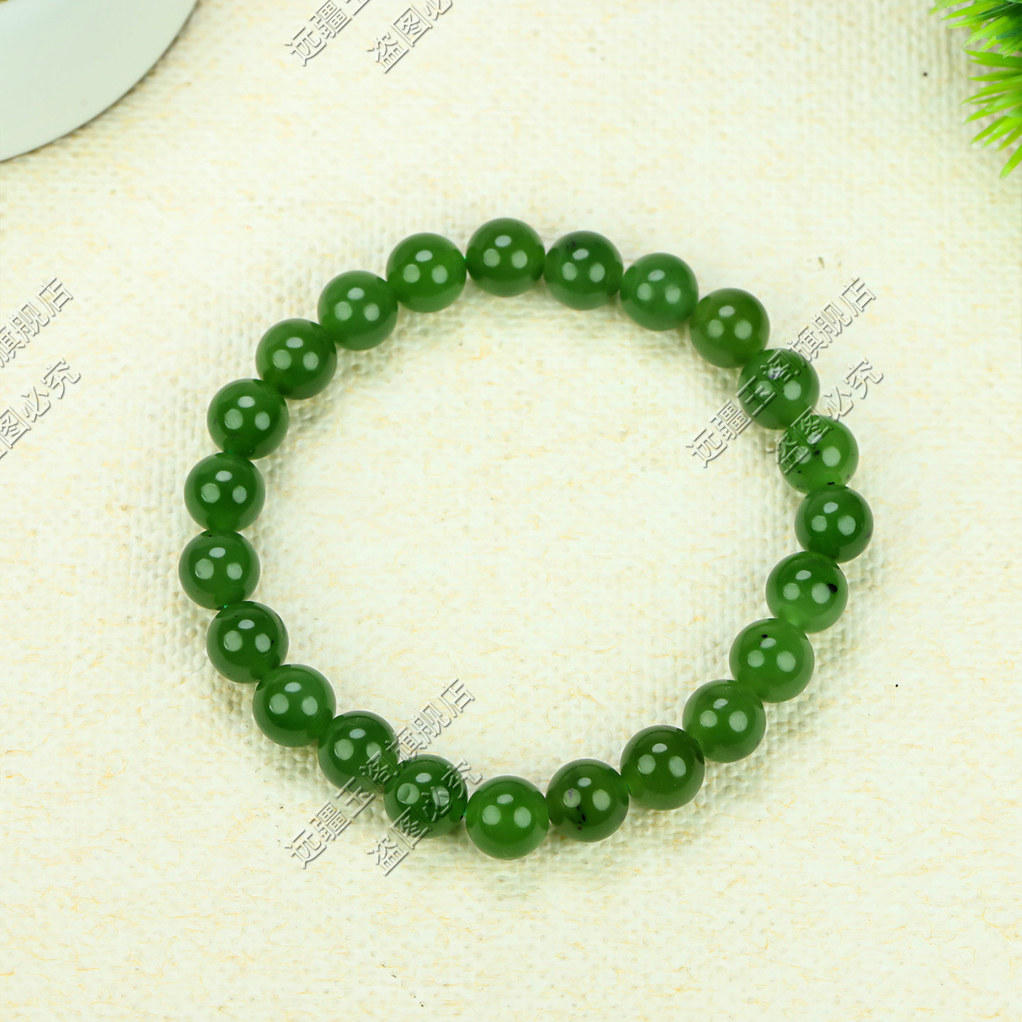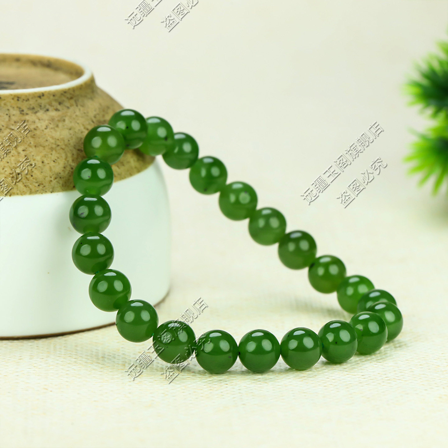 天然和田玉碧玉8mm圆珠手链菠菜绿手串女款时尚单圈手持