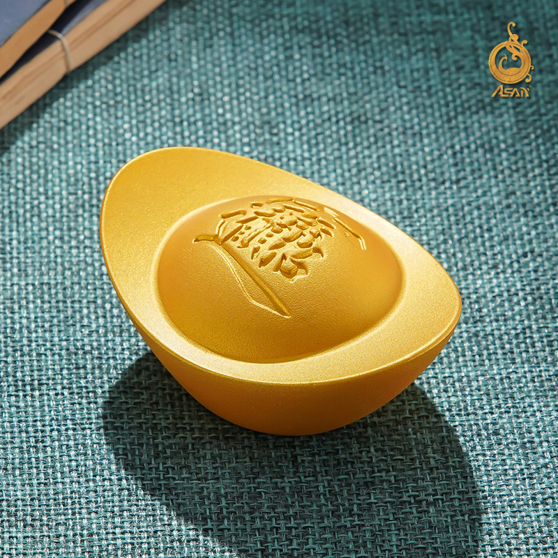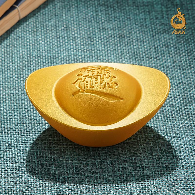 黄铜实心沙金色元宝摆件道具财神桌面一锭发财装饰品开业乔迁礼品