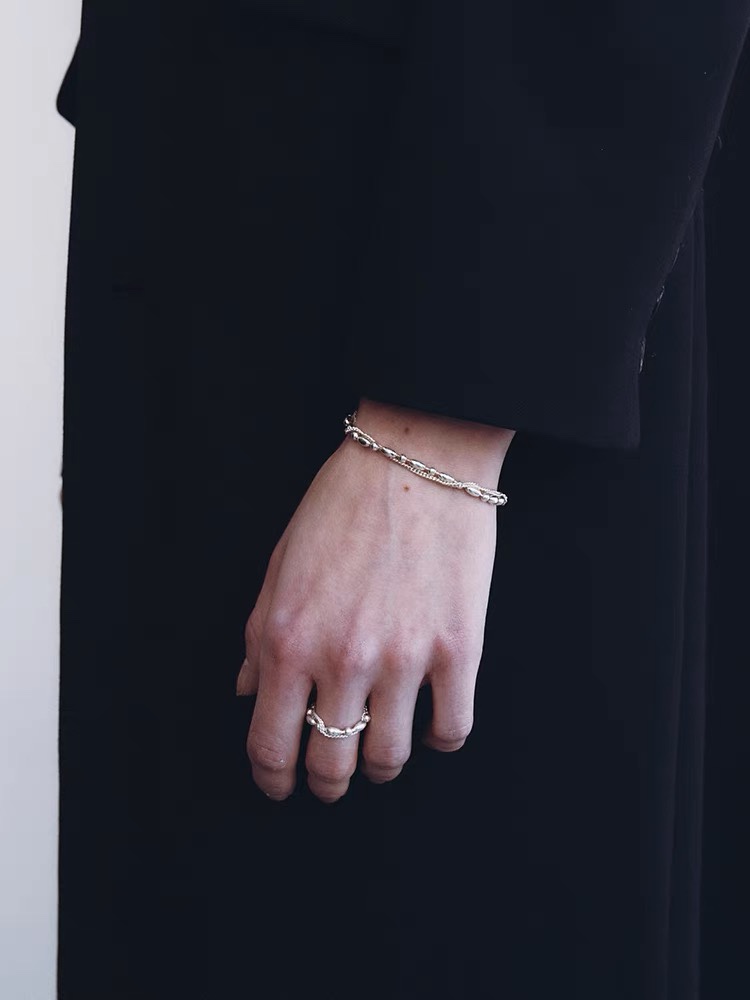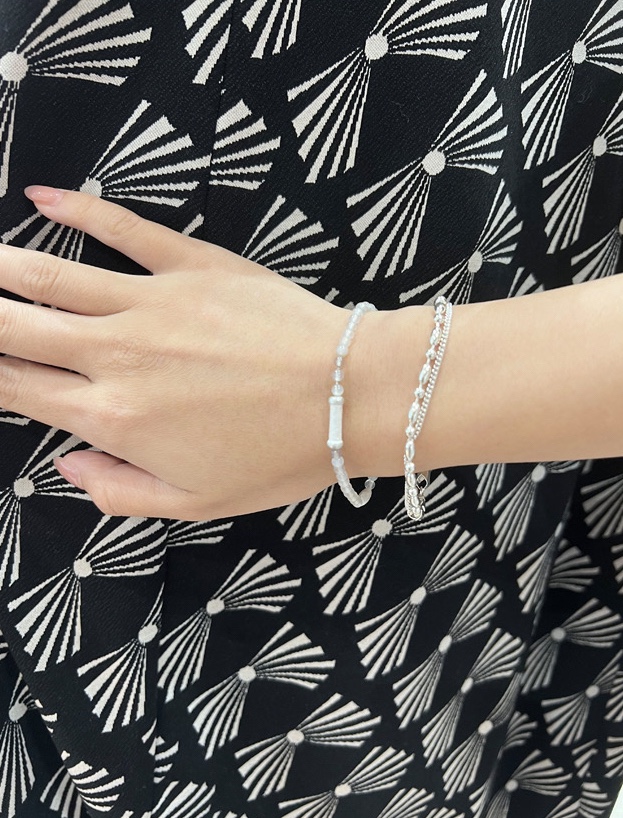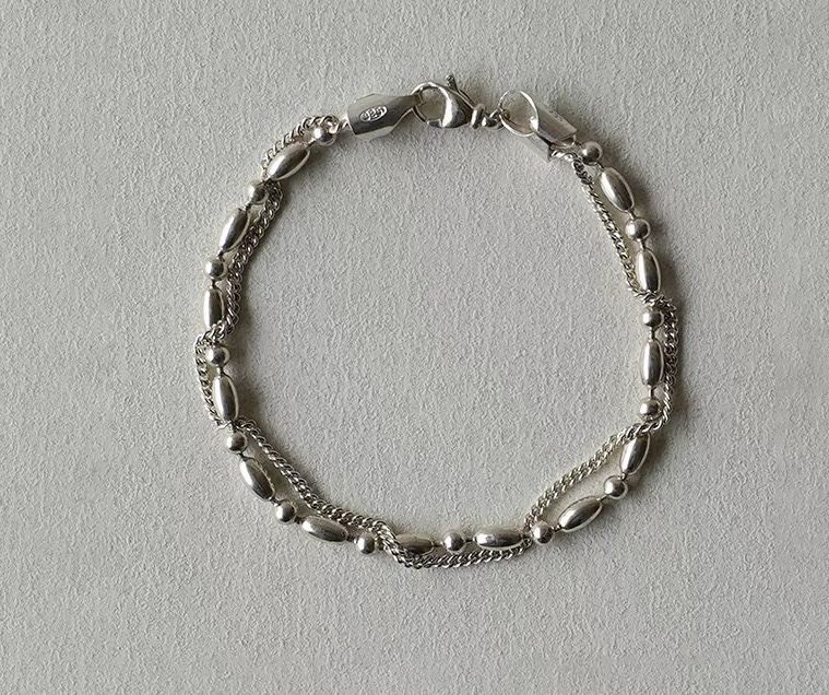 圆珠双链手链纯银双层叠戴拼接个性轻奢小众设计高级磨砂肌理饰品