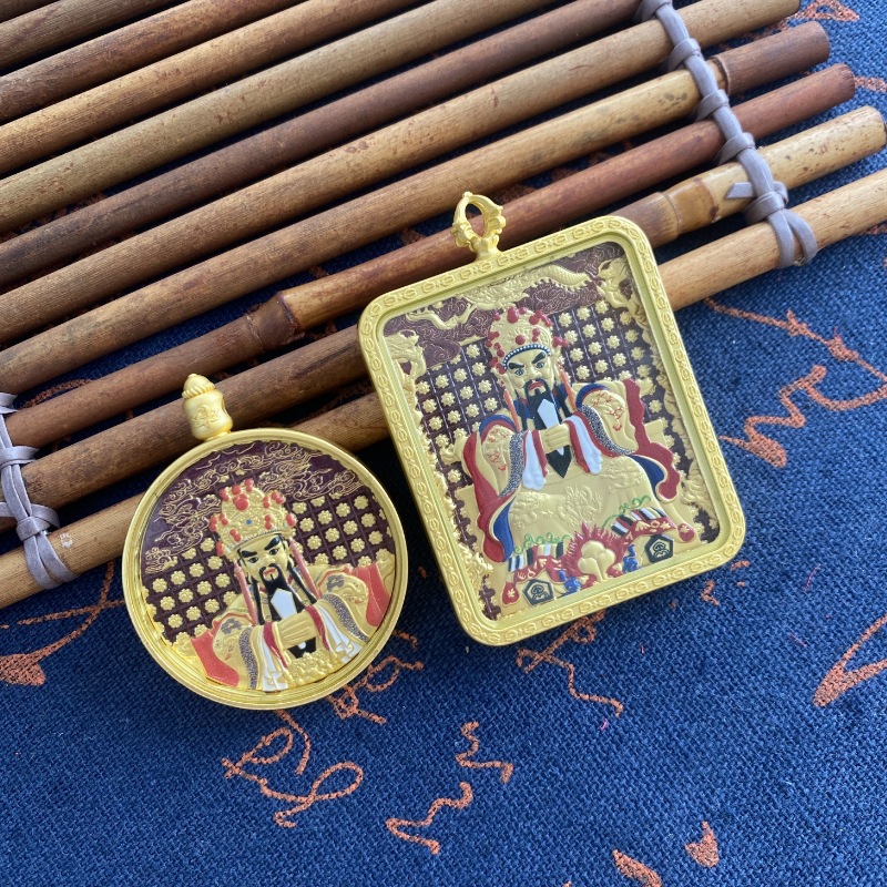 新款立体五爷文殊吊坠复古尼泊尔嘎乌盒合金唐卡盒双面挂饰送挂绳