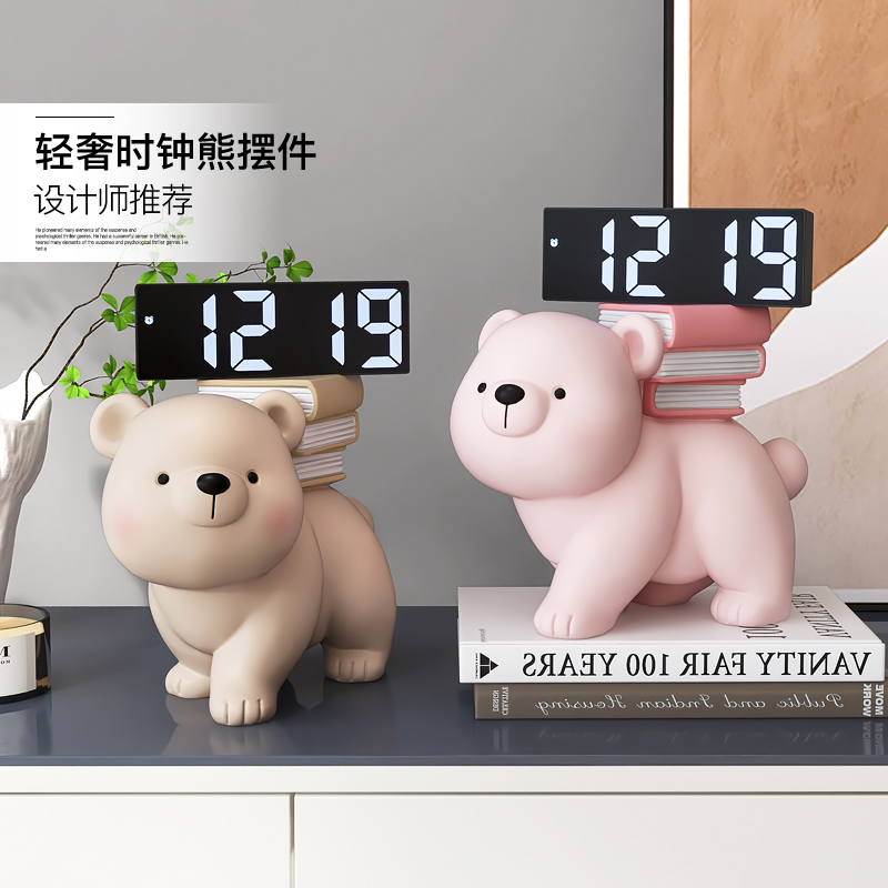 创意熊桌面摆件客厅数字电子时钟轻奢电视柜办公桌摆设床头装饰品