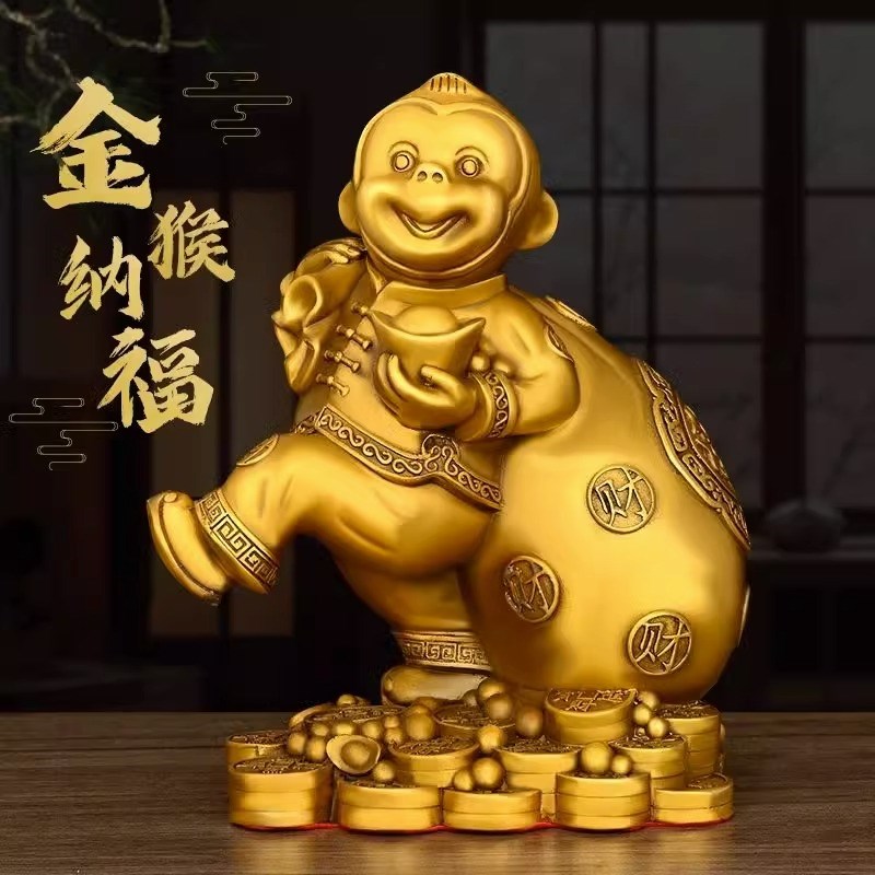 现货速发金属钱袋猴全铜生肖猴摆件十二生肖家居客厅装饰品乔迁新