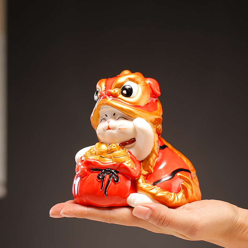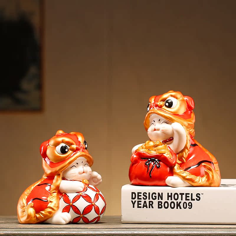 陶瓷醒狮招财猫摆件创意家居客厅玄关电视柜酒柜桌面装饰品摆设