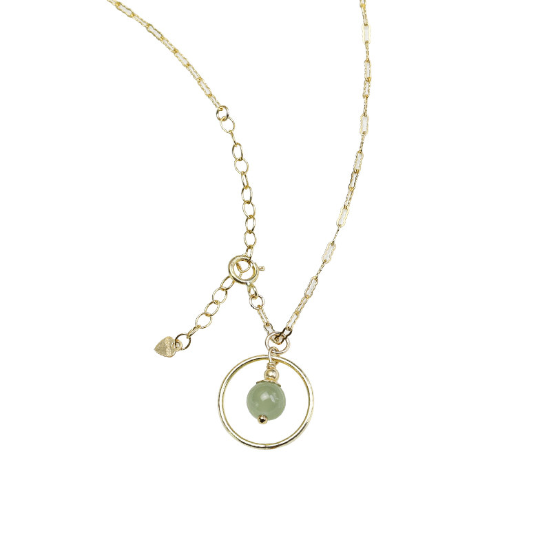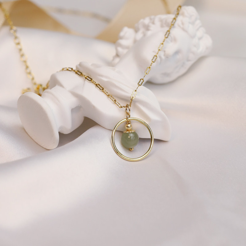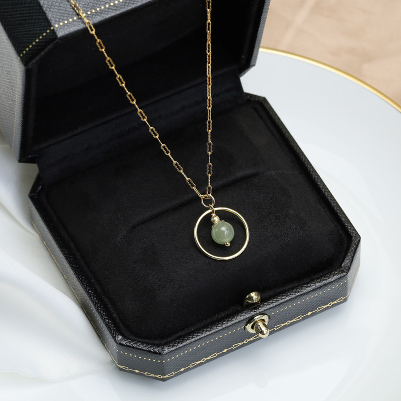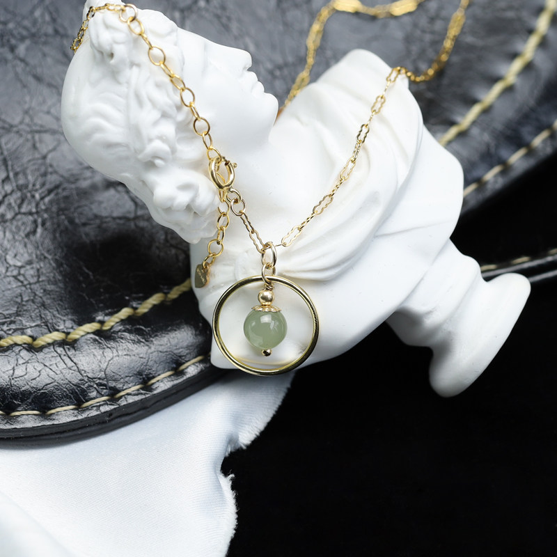 原创天然和田玉水晶项链14K包金女圆环吊坠锁骨链轻奢礼物