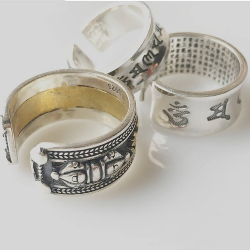 普门庵六字箴言戒指高街男金刚杵吊坠头金刚杵把件999纯银降魔杵