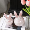 现代简约琉璃粉玉兔摆件创意客厅书房卧室桌面可爱兔子家居装饰品