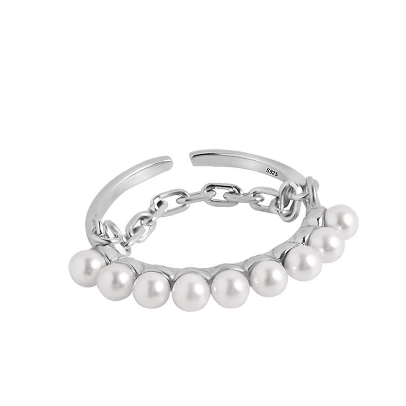 彩虹美人 S925纯银珍珠链条戒指女韩版ins简约小众设计轻奢指环潮