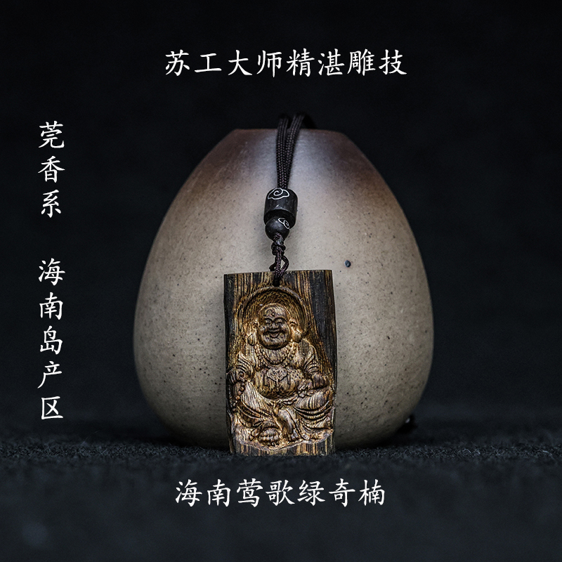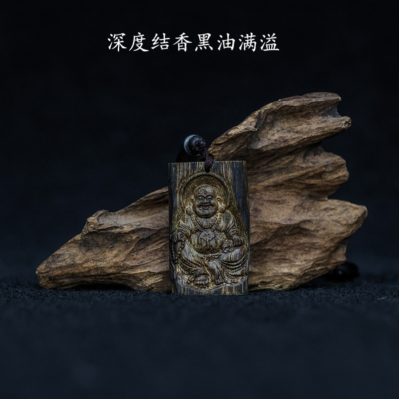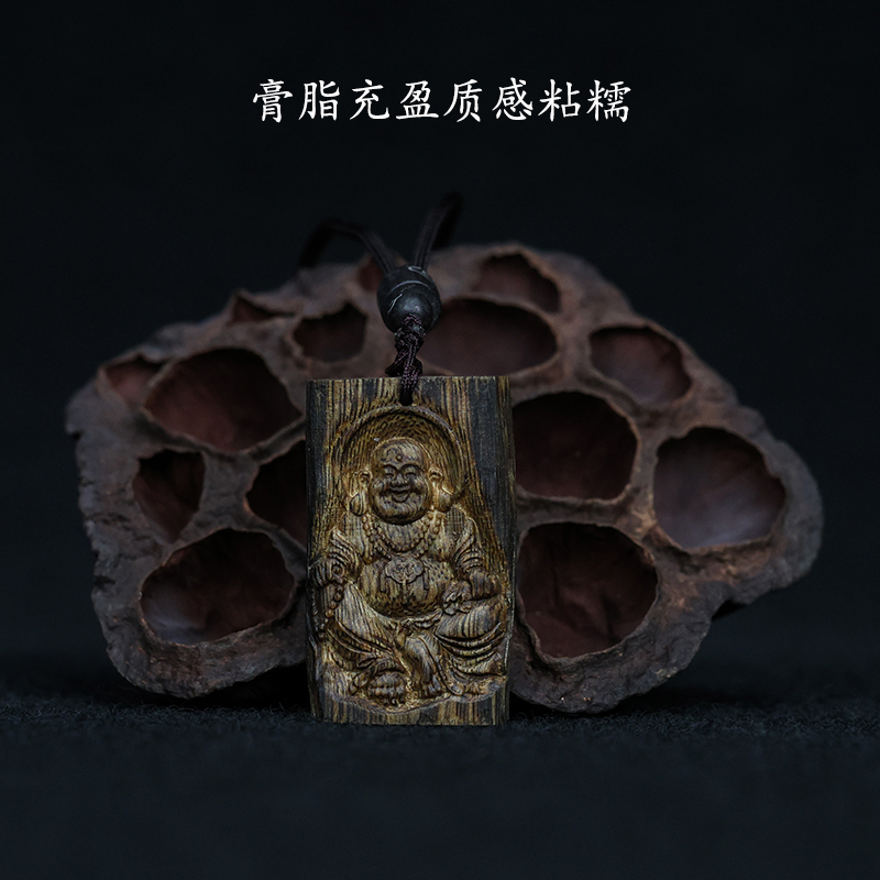 天然奇楠沉香雕刻观音弥勒吊坠平安无事牌把件车小挂件原木钥匙链